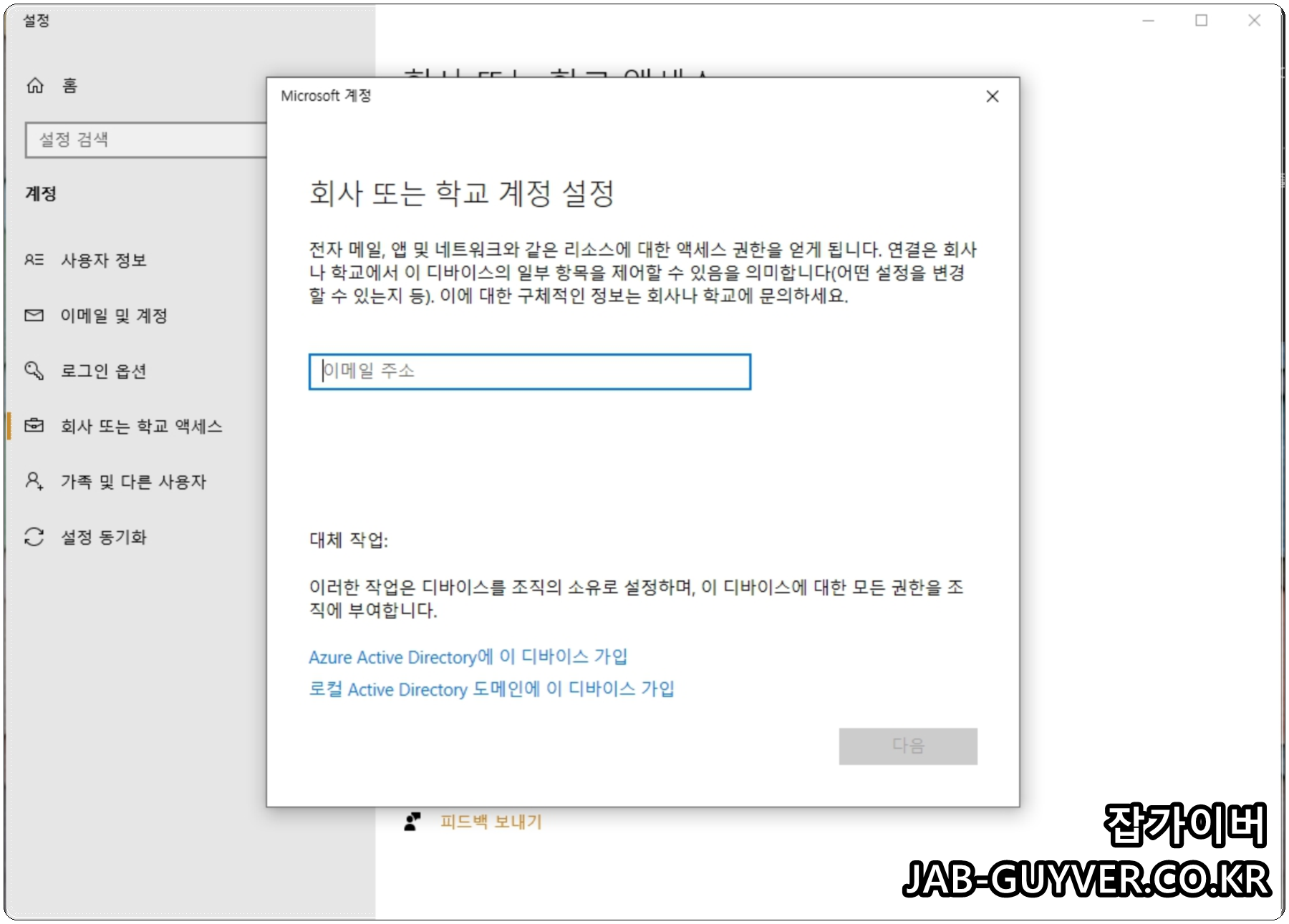 회사나 학교에서 학생들이나 직원들이 함께 사용하는 공용PC라면 회사 또는 학교에서 접근가능한 계정을 추가합니다.