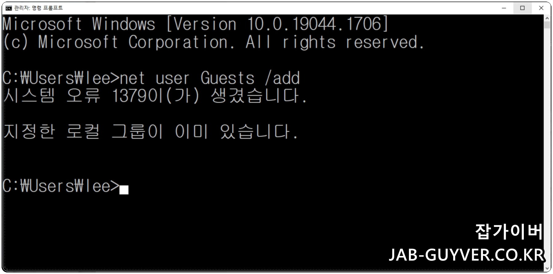 원하는 사용자계정 "게스트계정"이름 (Yellow)라는 가정하에 아래와 같이 입력합니다.