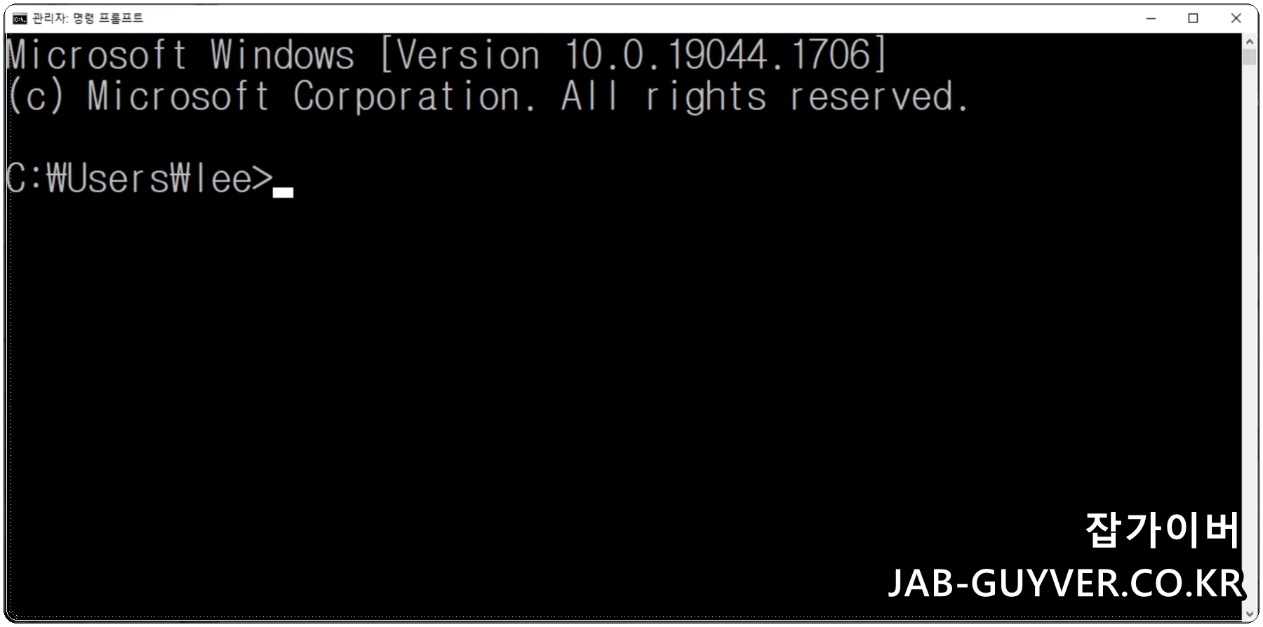 MS Dos 창이 실행되며 상단에 관리자라고 뜨느것을 볼 수 있습니다.