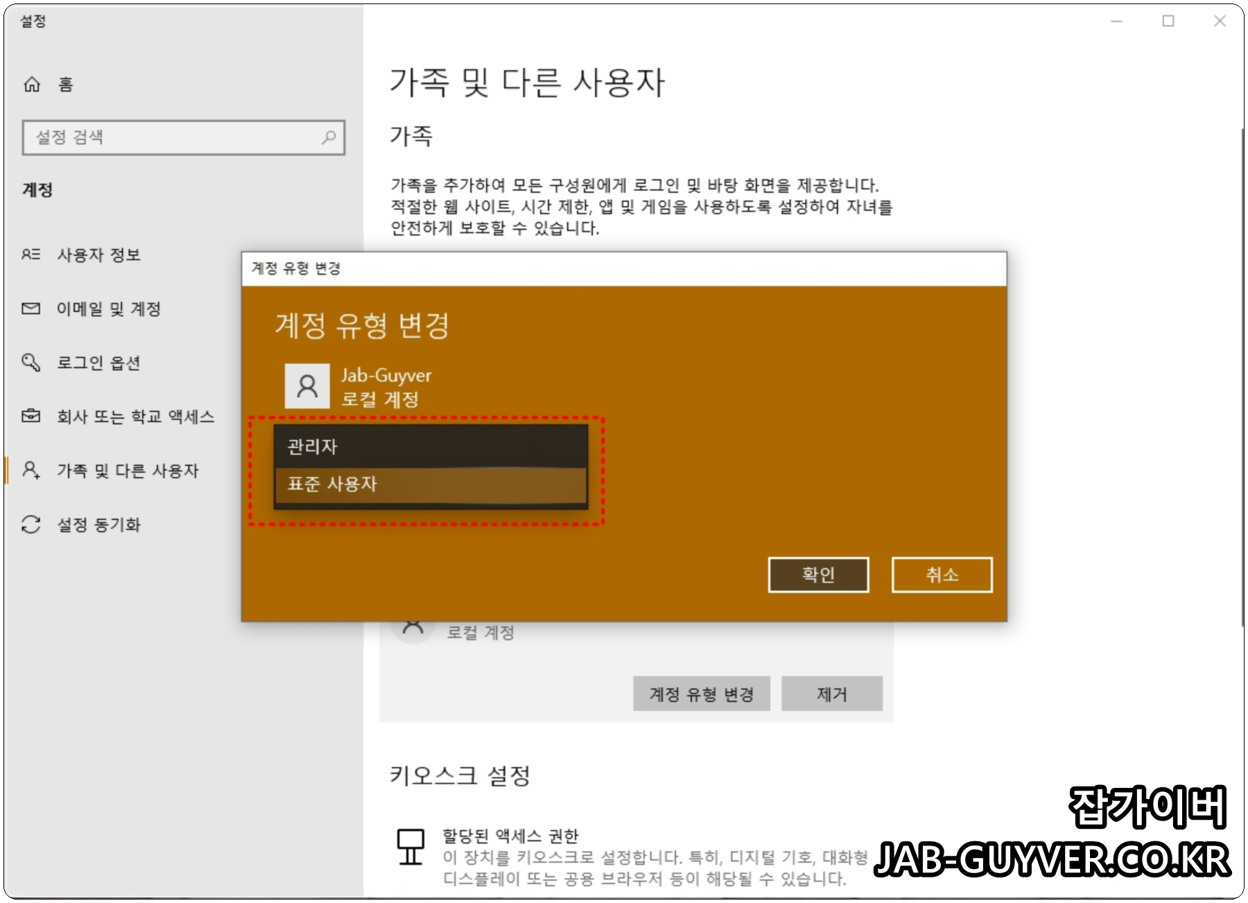 손님용 계정을 만들 때 특히 유용하고, 표준 사용자로 두면 시스템 건드릴 일도 거의 없어집니다.