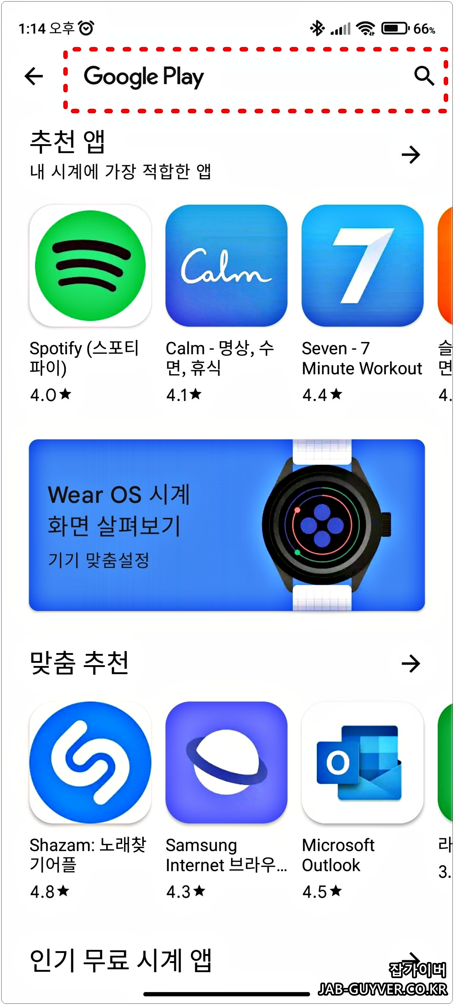 갤럭시워치에서 구글 앱스토어를 실행합니다.