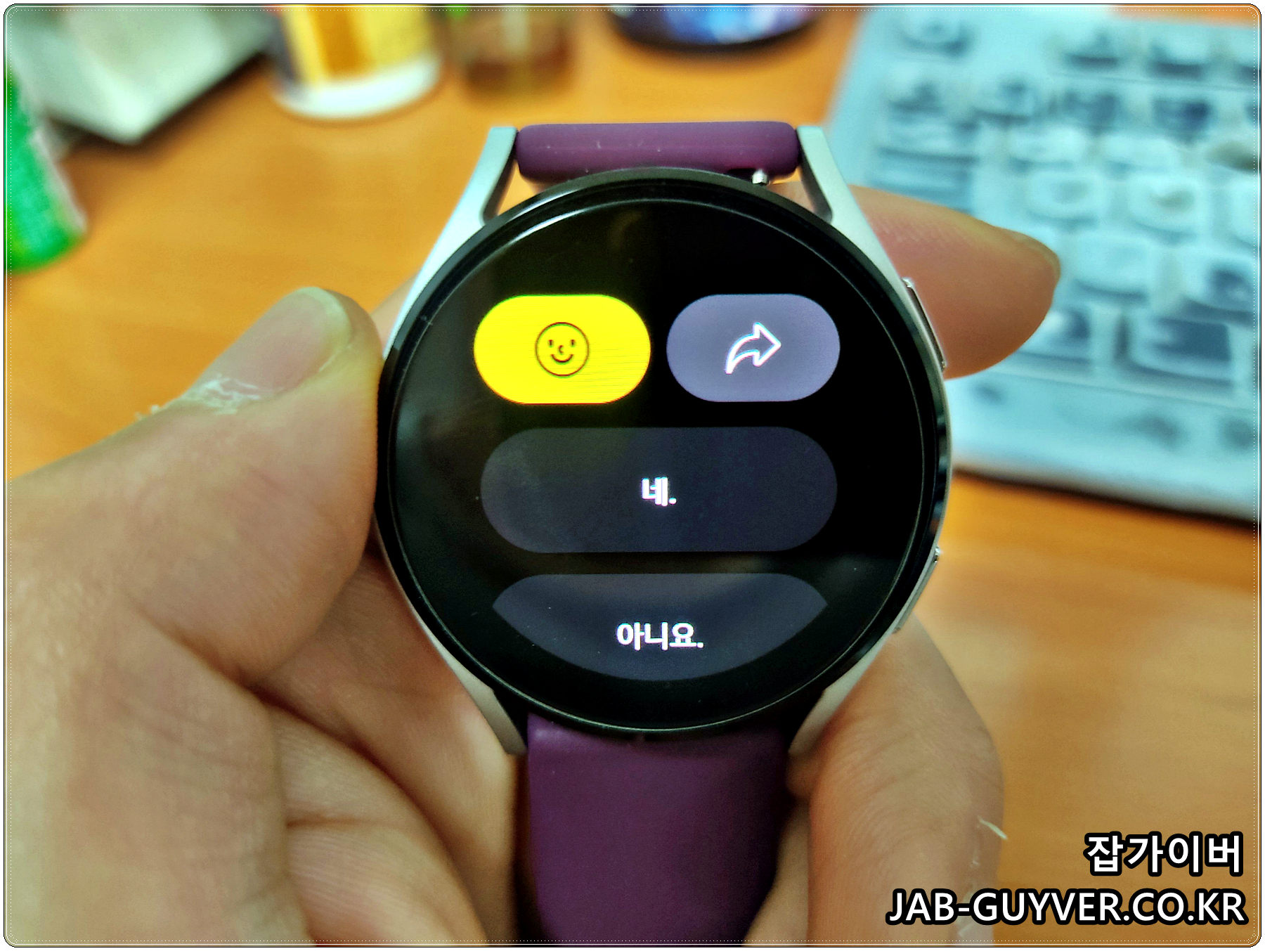삼성의 스마트워치인 갤럭시워치는 현재 갤럭시워치4 까지 출시되어 기존 갤럭시워치3 보다 터치패널을 통한 타이핑이 더욱 정밀하게 업그레이드 되어서 작은 시계화면에서도 타이핑을 칠때 오타가 많이 줄었으며 그 외에도 음성인식을 지원하기 때문에 구글음성 어시스턴트 기능을 통해 쉽게 음성으로 답장을 하거나 앱을 실행할 수 있습니다.