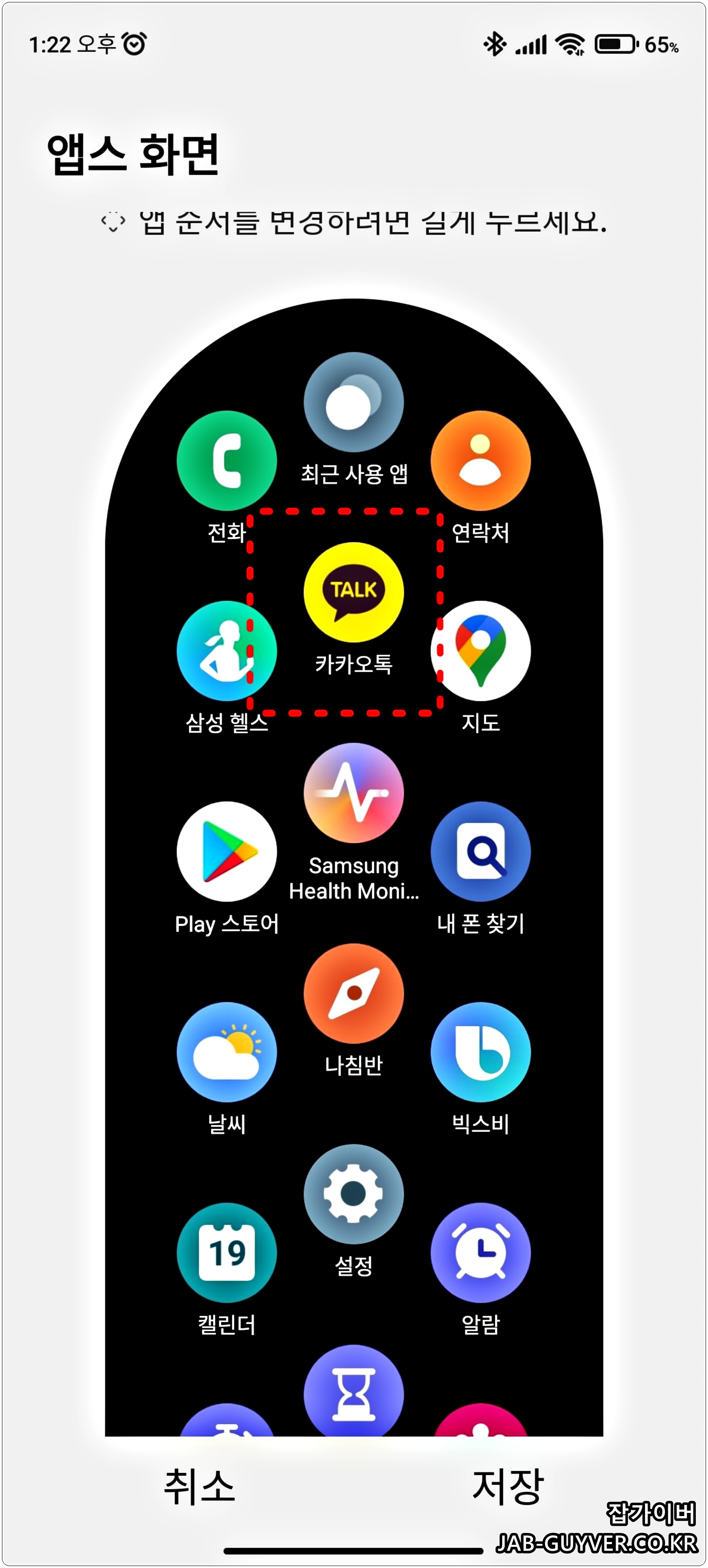 갤럭시워치 앱스화면 순서변경