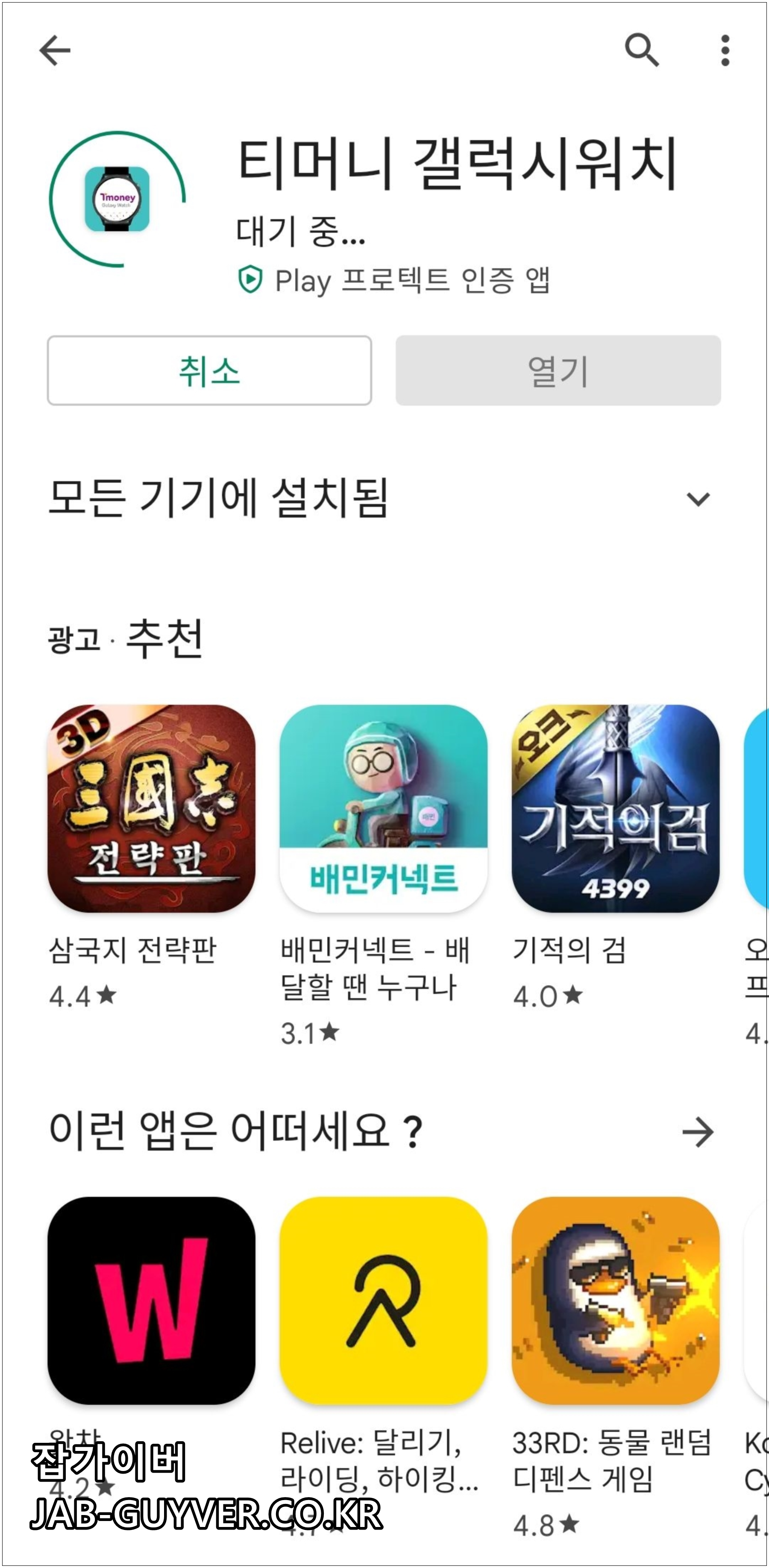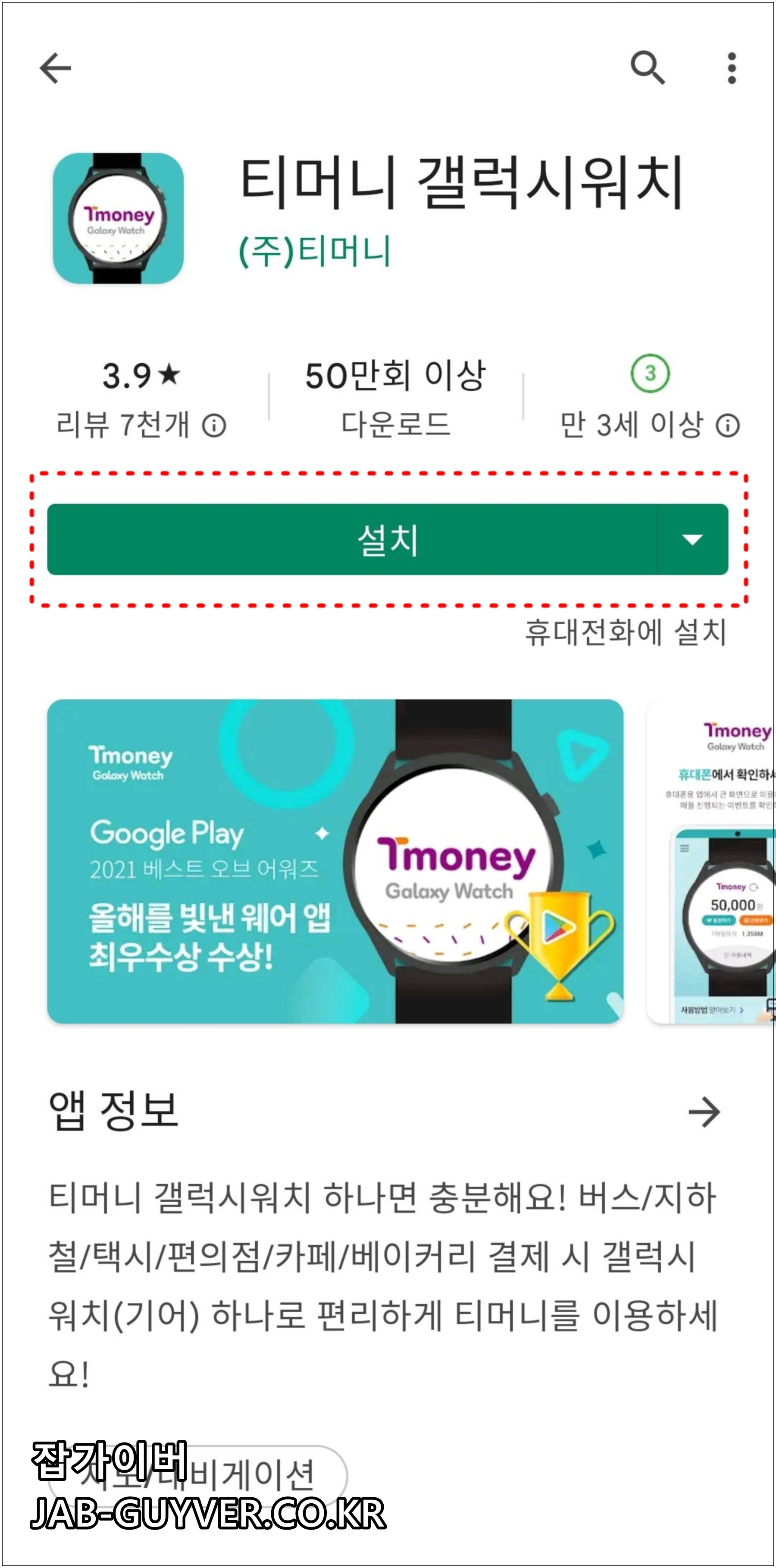 워치에서 티머니 앱 설치