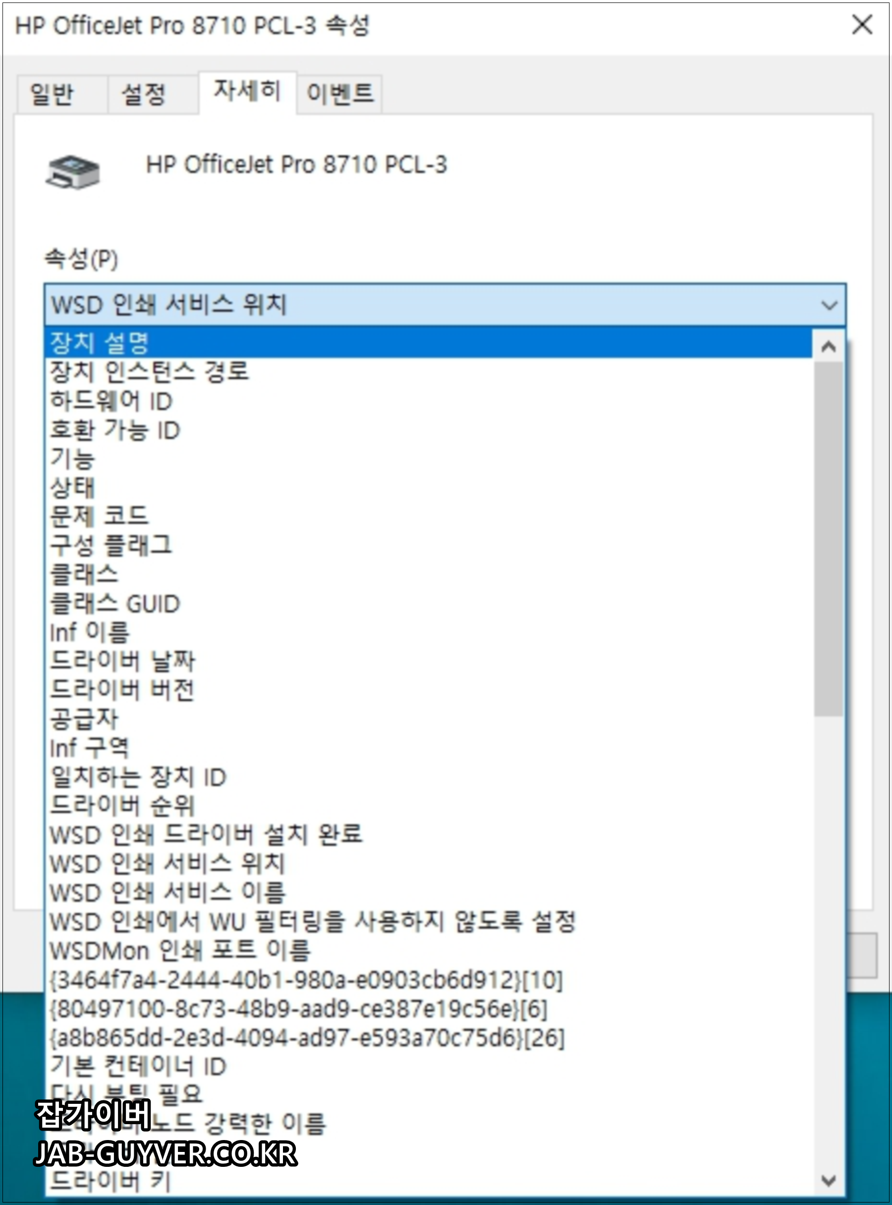 윈도우 장치관리자 프린터 정보