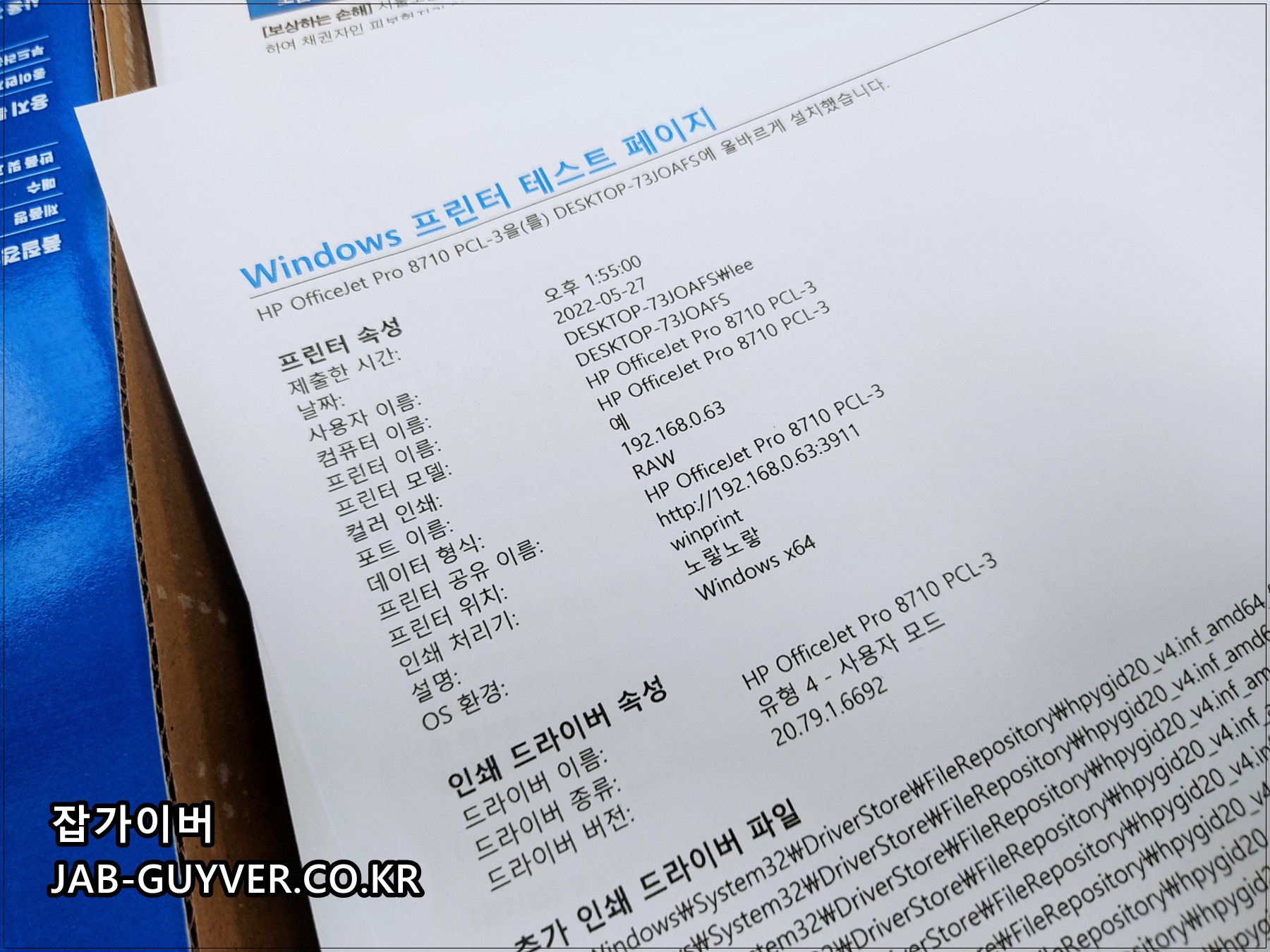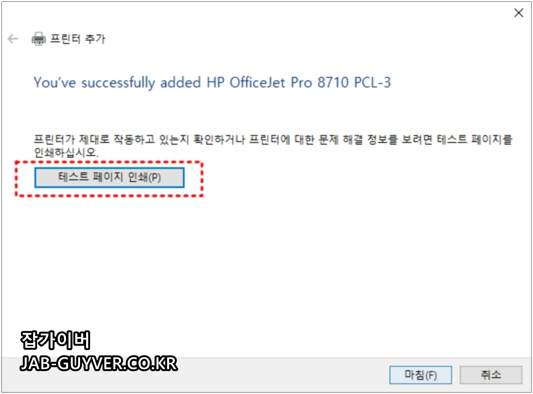 프린터 드라이브를 설치했다면 테스트 페이지 인쇄를 통해 현재 프린터 정보를 확인할 수 있습니다.