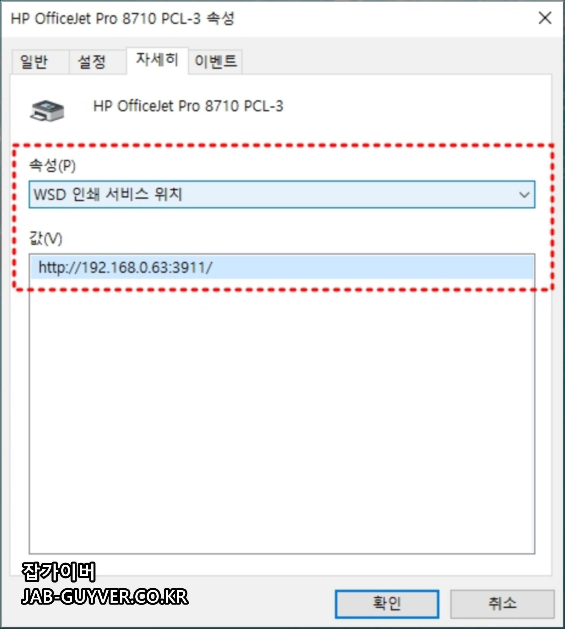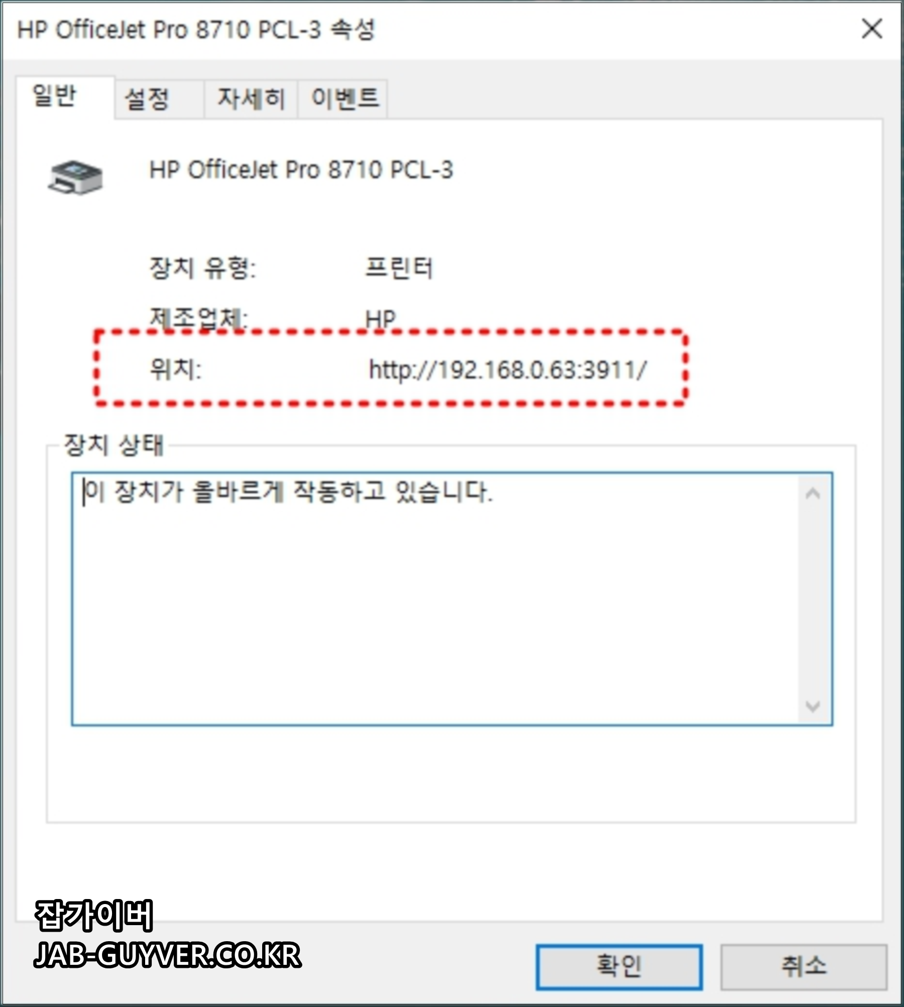 프린터 IP주소 : 192,168.0.63 : 3911