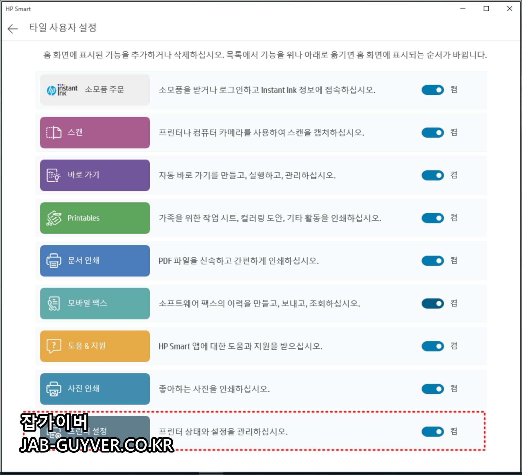 HP프린터 기준이지만 캐논 프린터나 삼성 프린터 등 다른 프린터도 크게 다르지 않습니다.