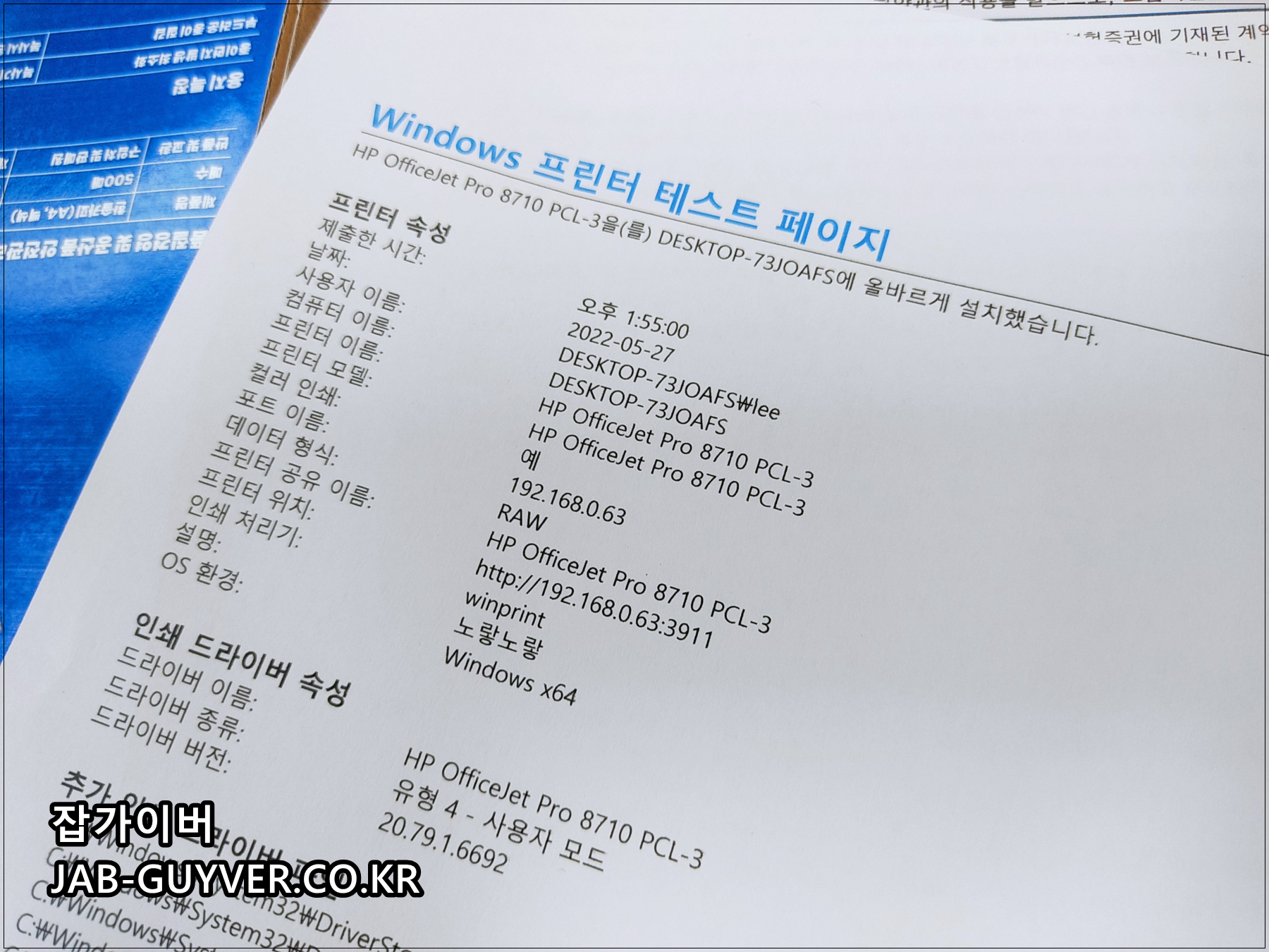 프린터 드라이브를 설치했다면 테스트 페이지 인쇄를 통해 현재 프린터 정보를 확인할 수 있습니다.
