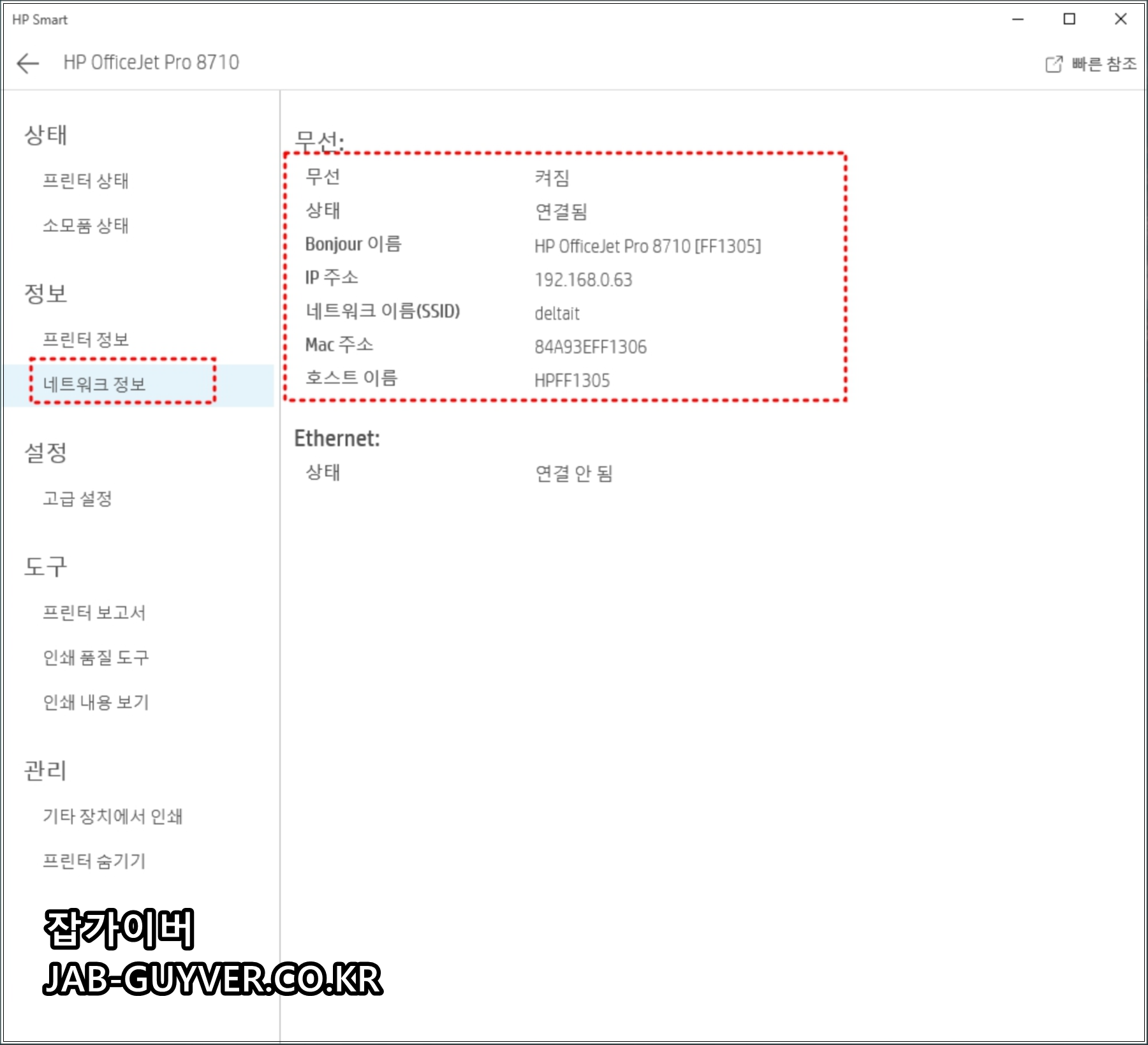 참고 : HP프린터 네트워크 프린터 와이파이 연결 – HP OfficeJet Pro 8710