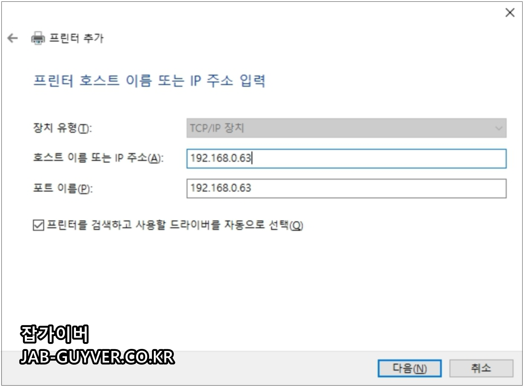 프린터 자동 설치 및 수동 설치 "TCP / IP 주소"방법은 윈도우10 외에도 윈도우7, 윈도우8, 윈도우11 등에서도 설치방법이 크게 다르지 않습니다.