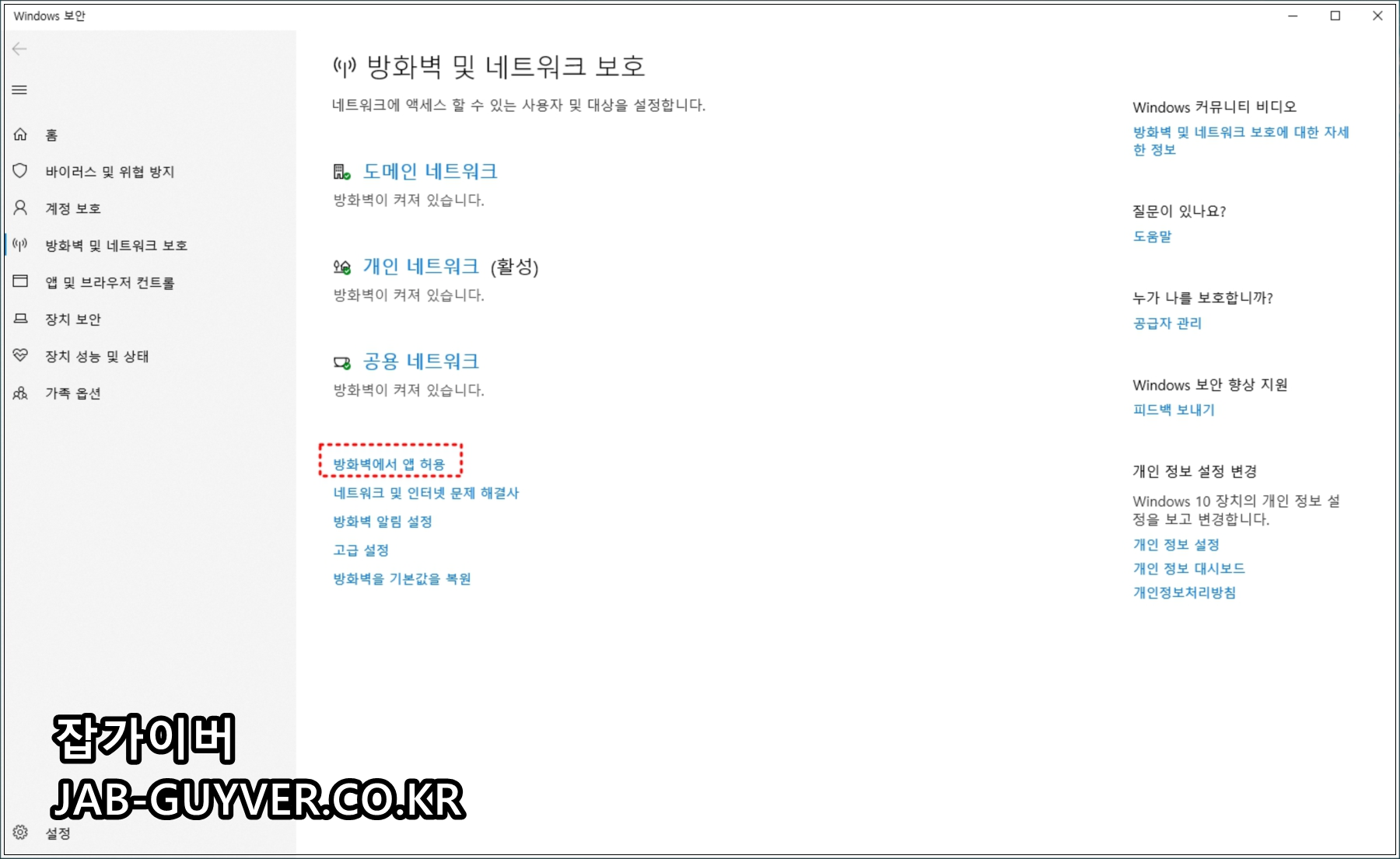 윈도우10 방화벽 특정 앱차단 해제