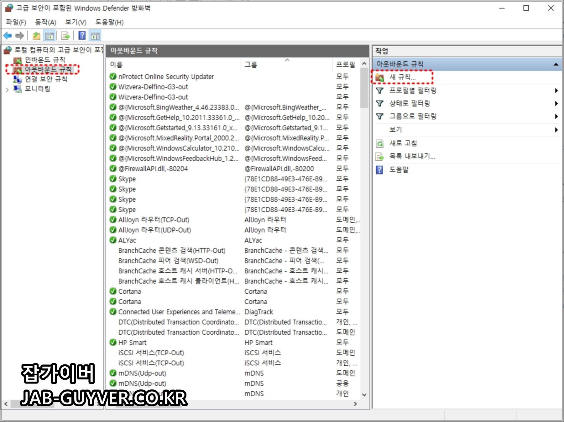 고급 보안 방화벽에서 아웃바운드 규칙을 선택한 뒤, 새 규칙에서 포트 또는 프로그램을 지정하고 연결 허용을 선택하면 됩니다. 특정 서버로만 나가게 하고 싶다면 원격 IP를 지정해 범위를 좁히는 방식이 깔끔합니다.
