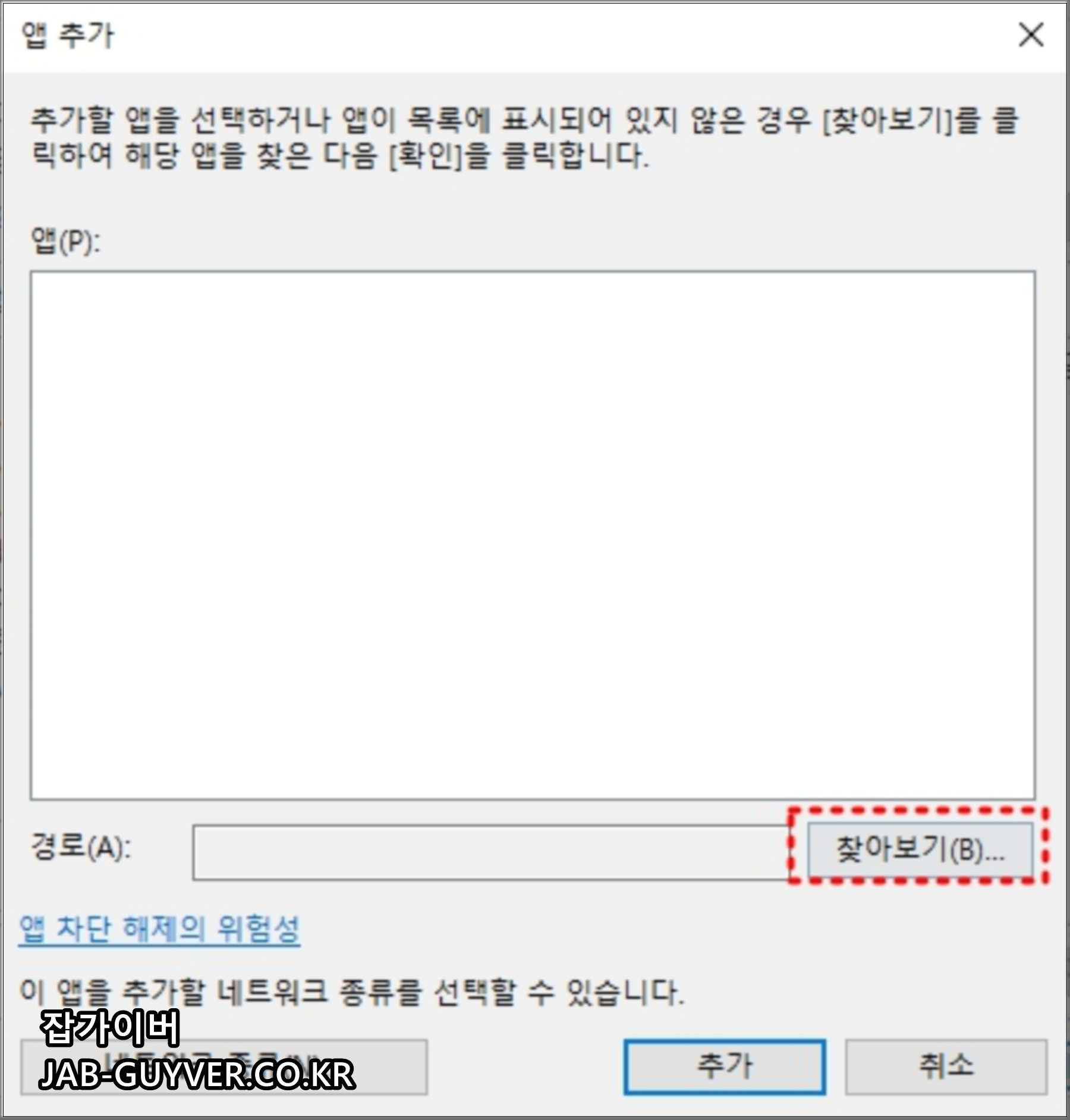 여기서 앱 허용을 선택한 뒤, 목록에 없는 프로그램이라면 다른 앱 허용으로 직접 실행 파일(.exe)을 지정해 추가할 수 있습니다.