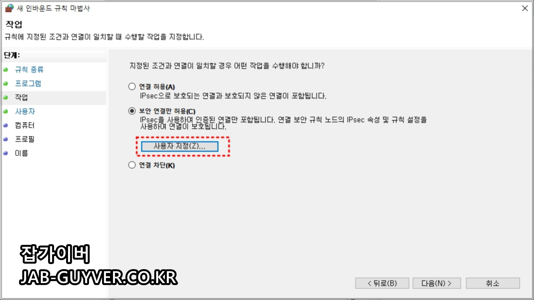 일반 사용자라면 보통 “연결 허용”으로 충분하고, 필요할 때만 보안 연결 규칙을 건드리는 편이 안전합니다.