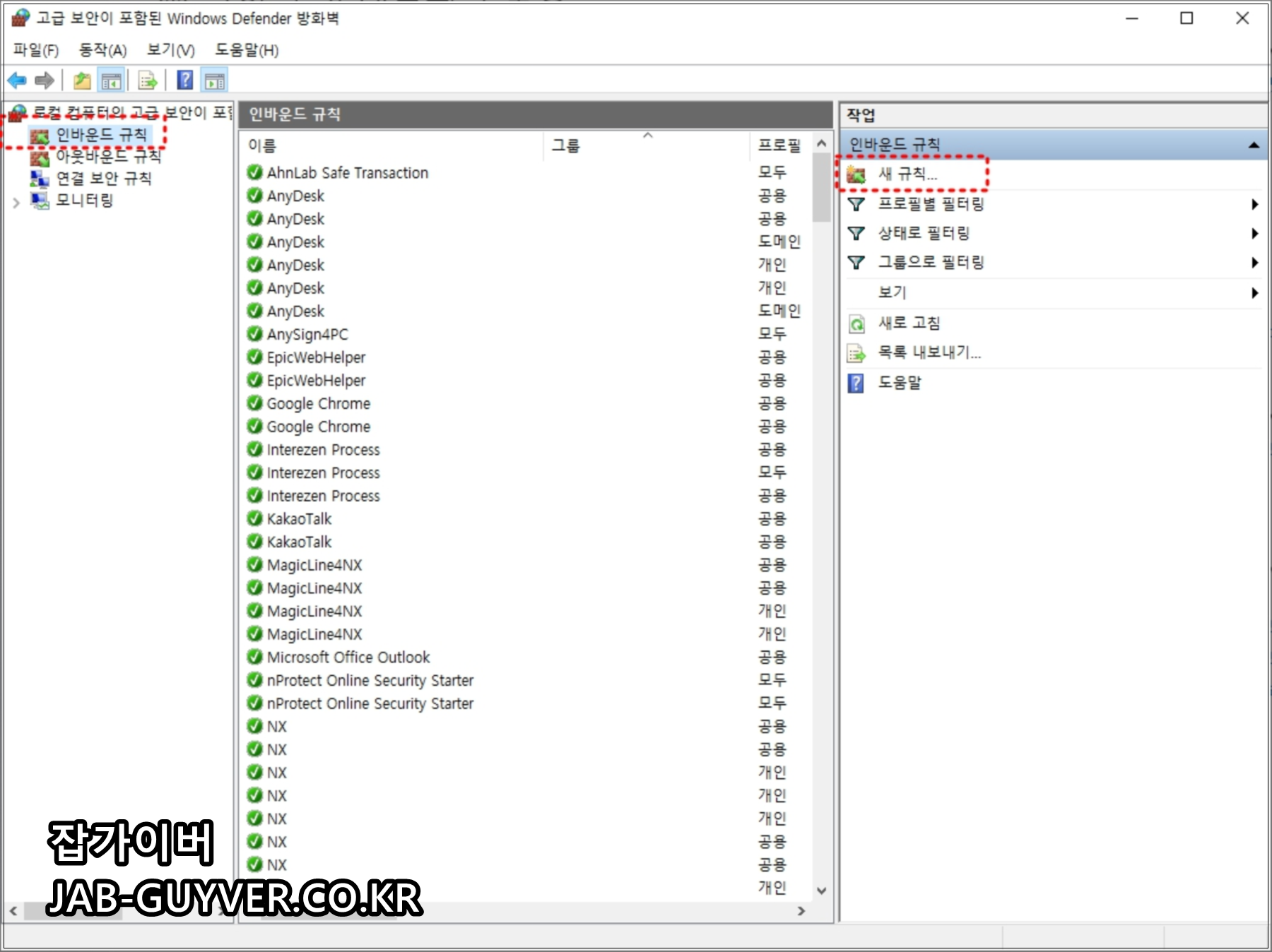 인바운드 규칙을 선택 후 새 규칙을 선택해 추가합니다.