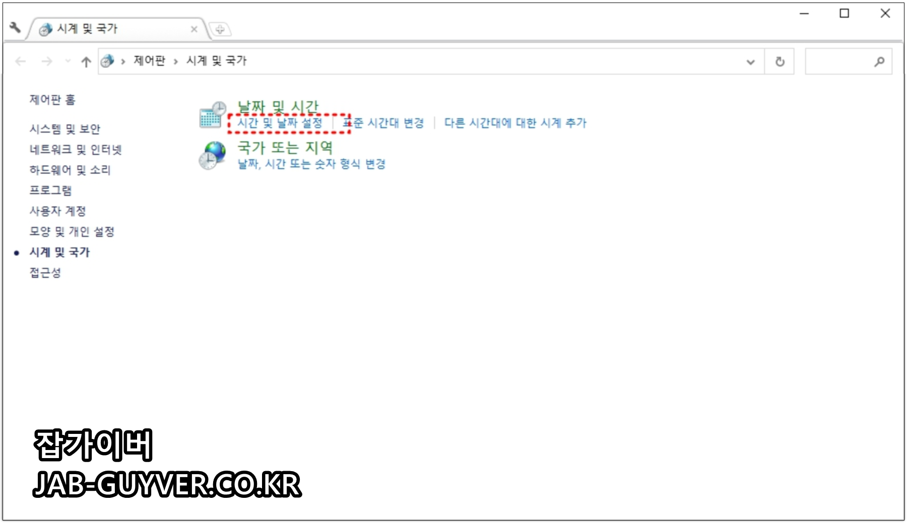 날짜 및 시간이 자동으로 동기화 되지 않는다면 수동으로 컴퓨터 날짜 및 시간을 변경합니다.