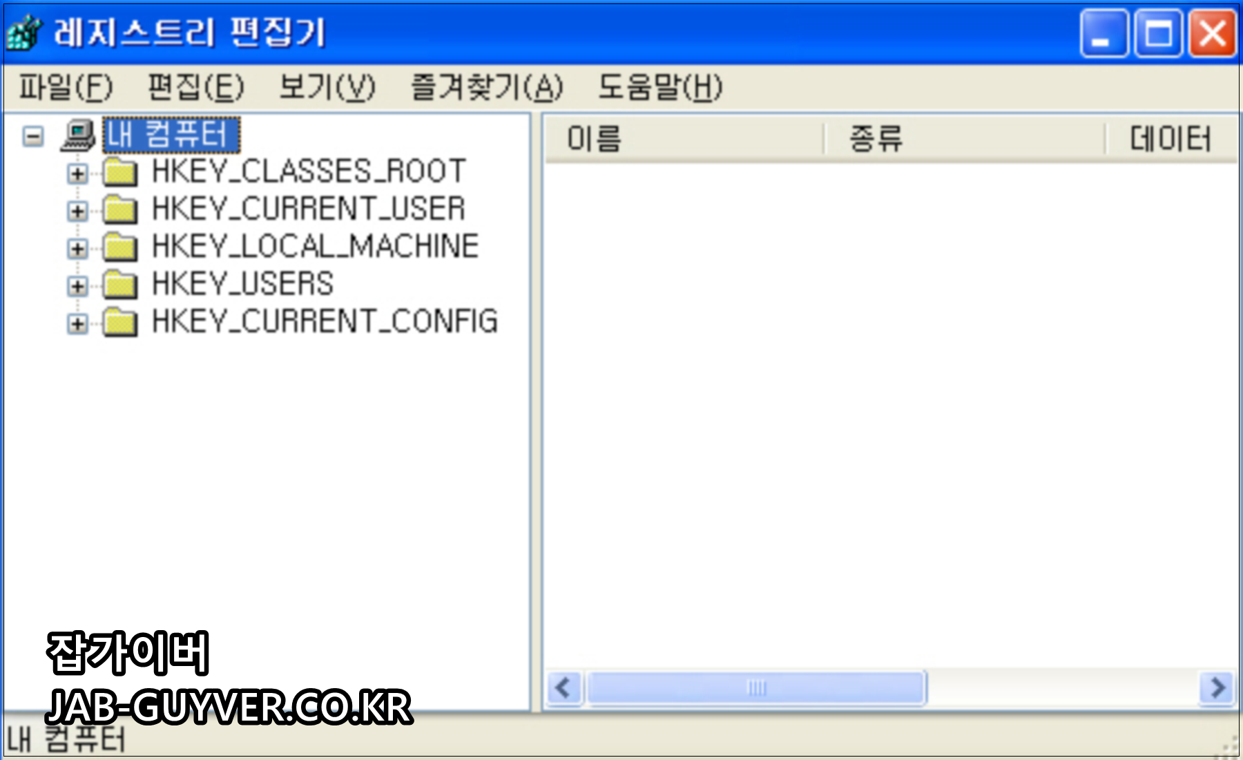 위 경로로 들어가 더블클릭 후 나오는 윈도우XP 레지스트리 값을 전부 삭제합니다.
