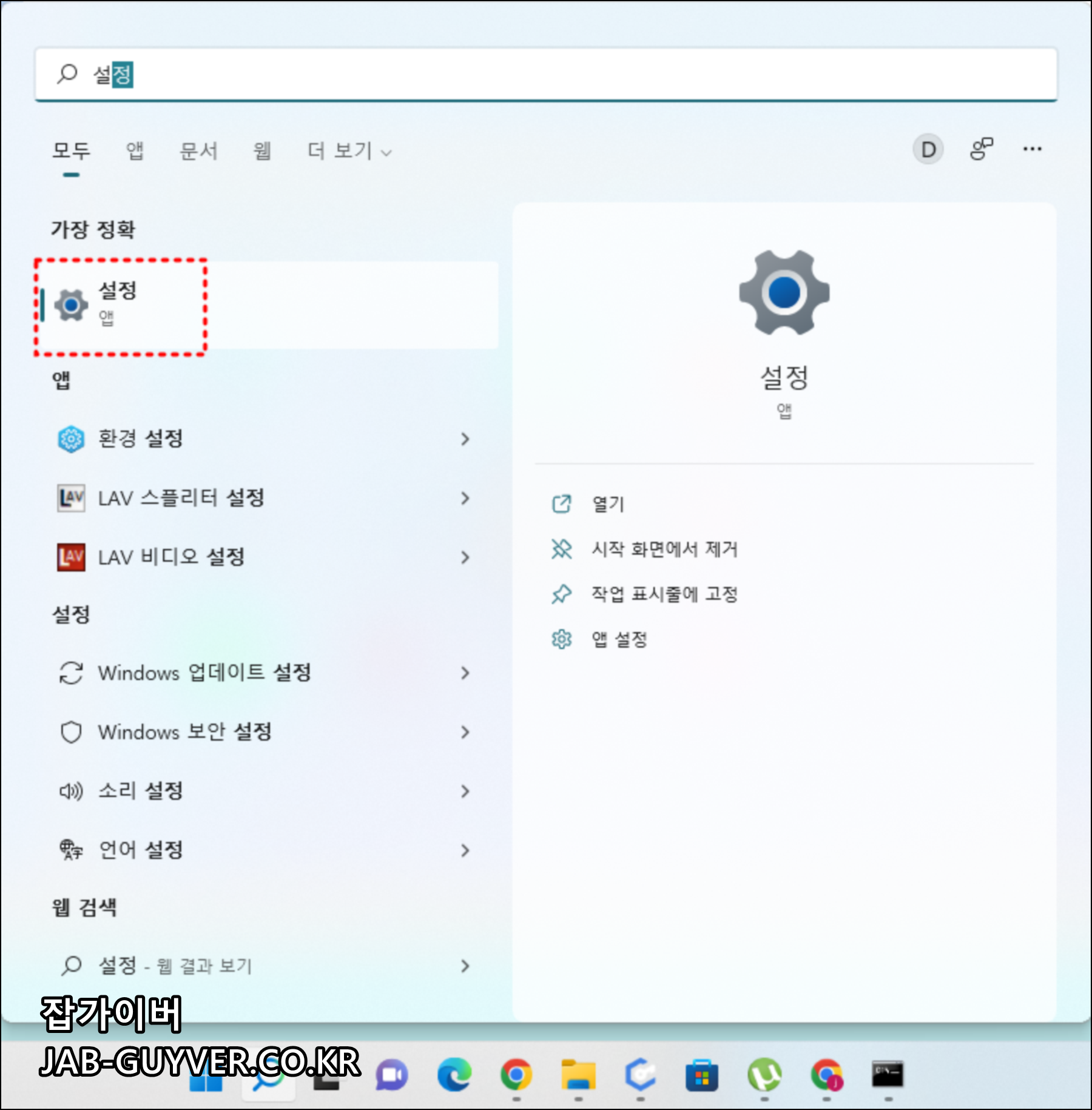 윈도우11 로고 선택 후 설정으로 들어갑니다.