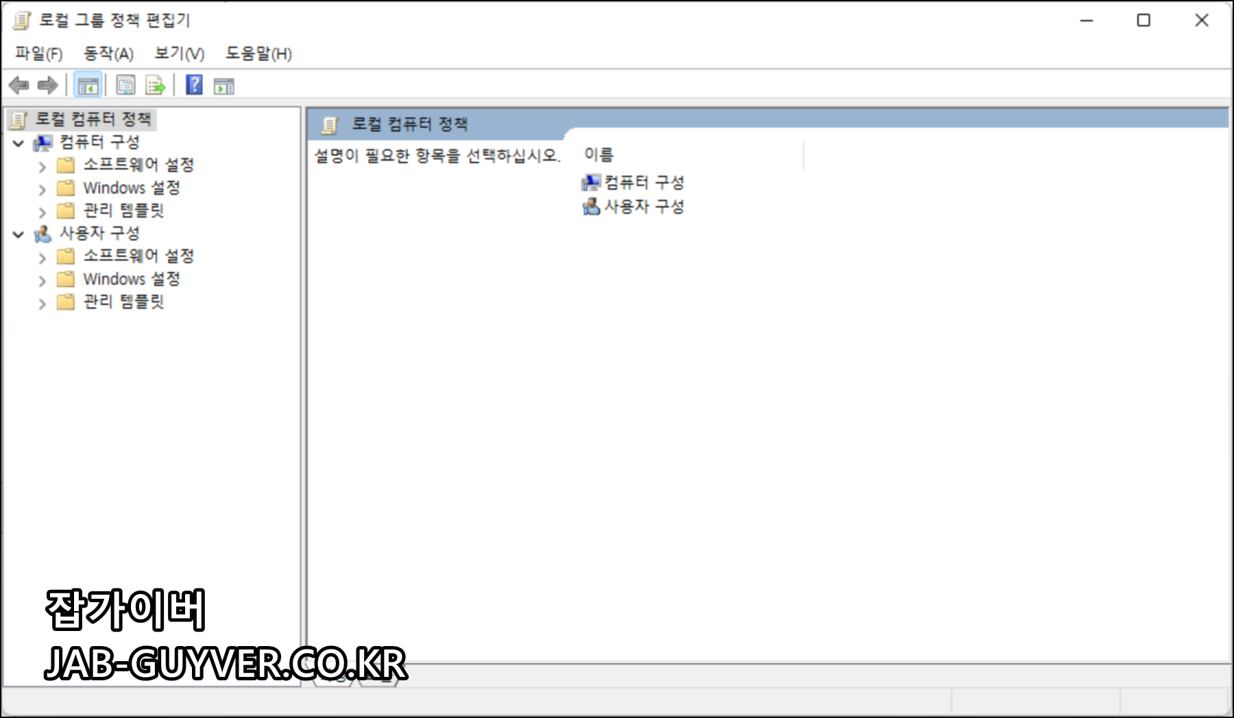윈도우 홈버전에 로컬 그룹 정책 편집기가 실행되는것을 볼 수 있습니다.