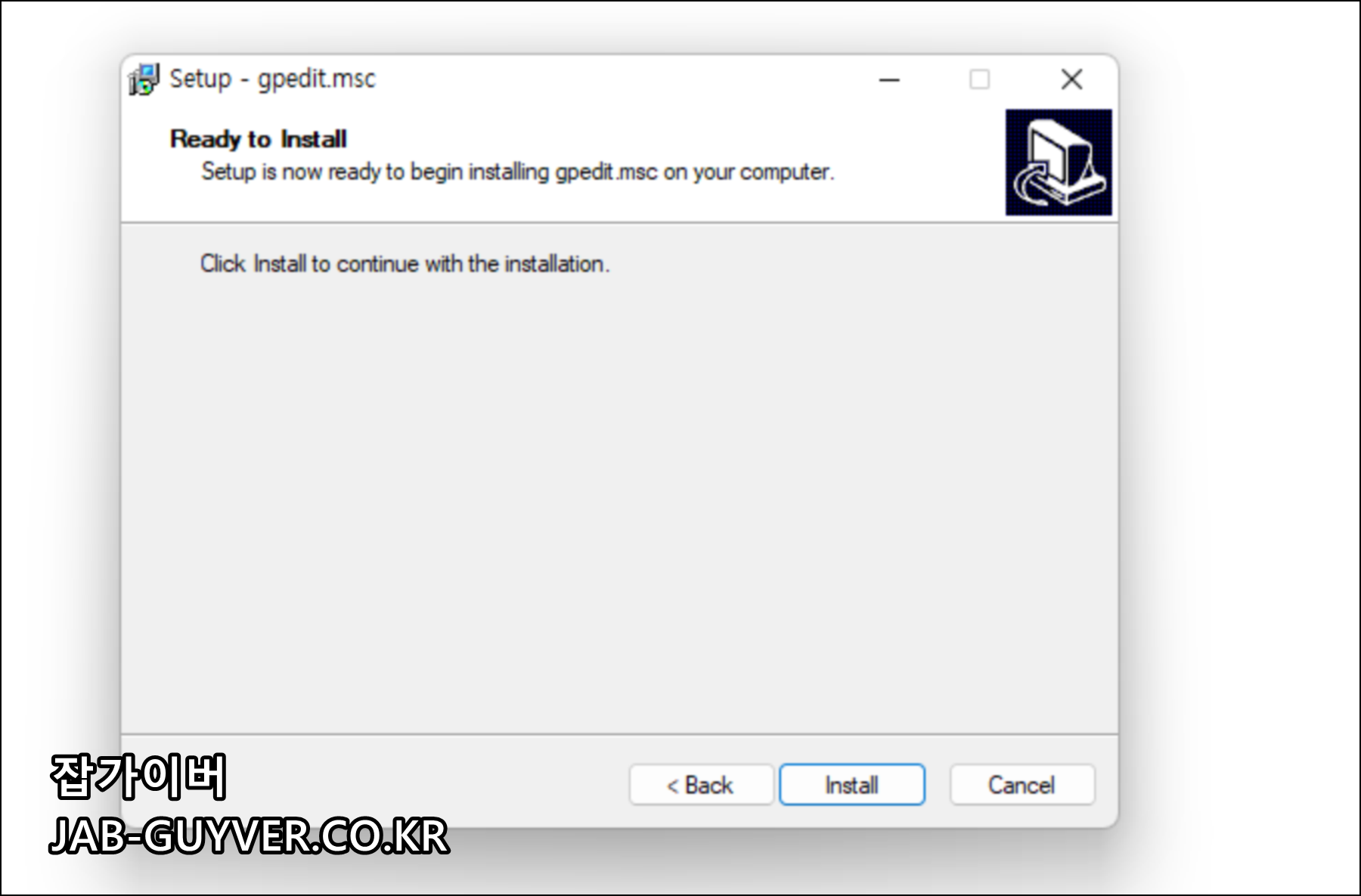 gpedit.msc 자동으로 설치가 진행됩니다.