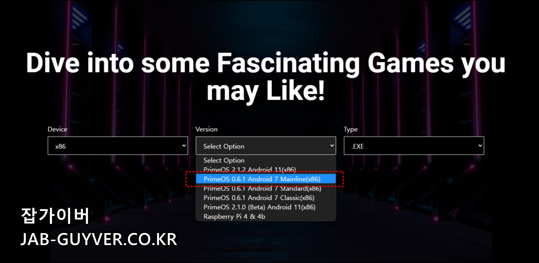 PrimeOS 버전을 선택합니다.