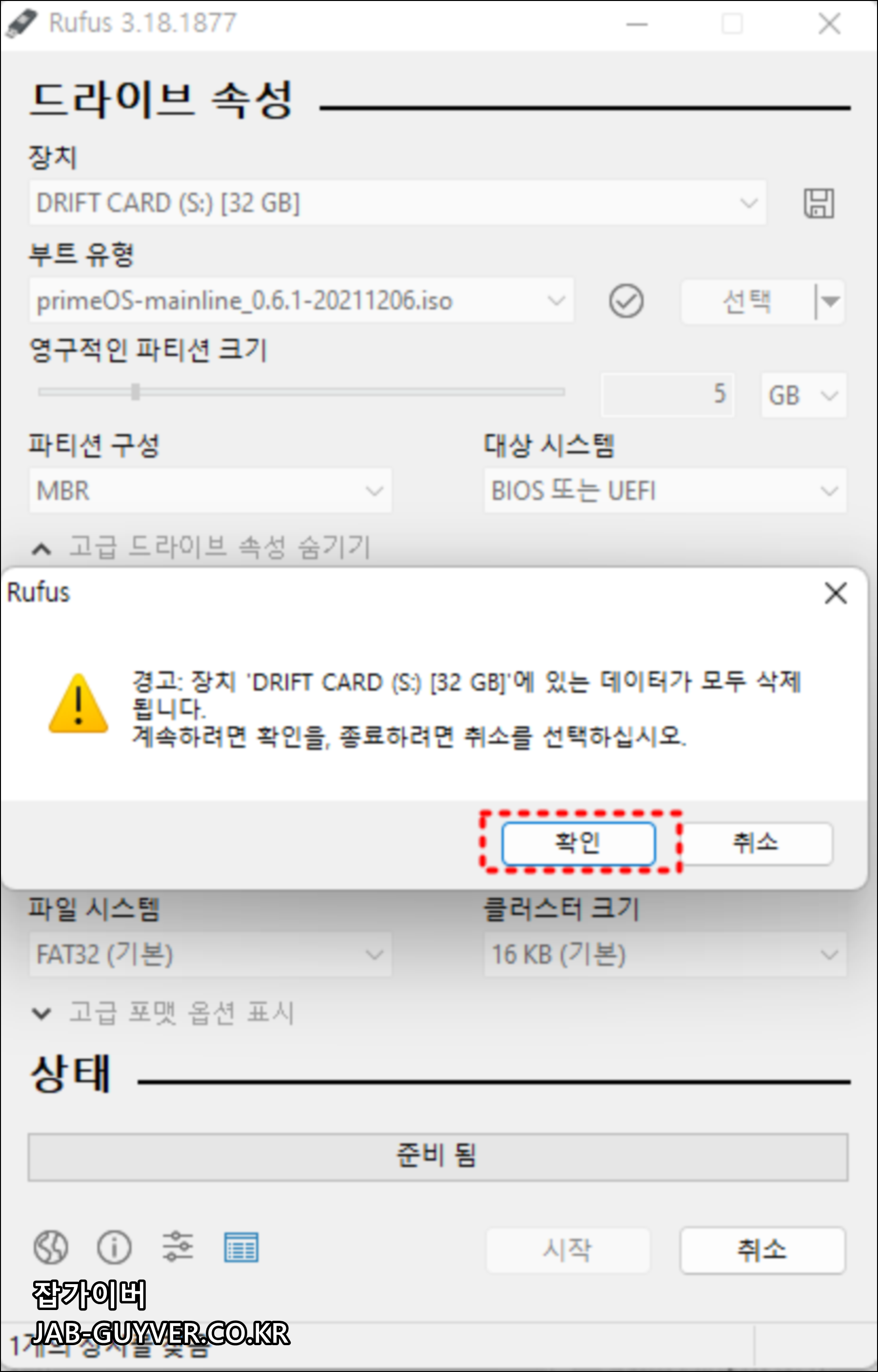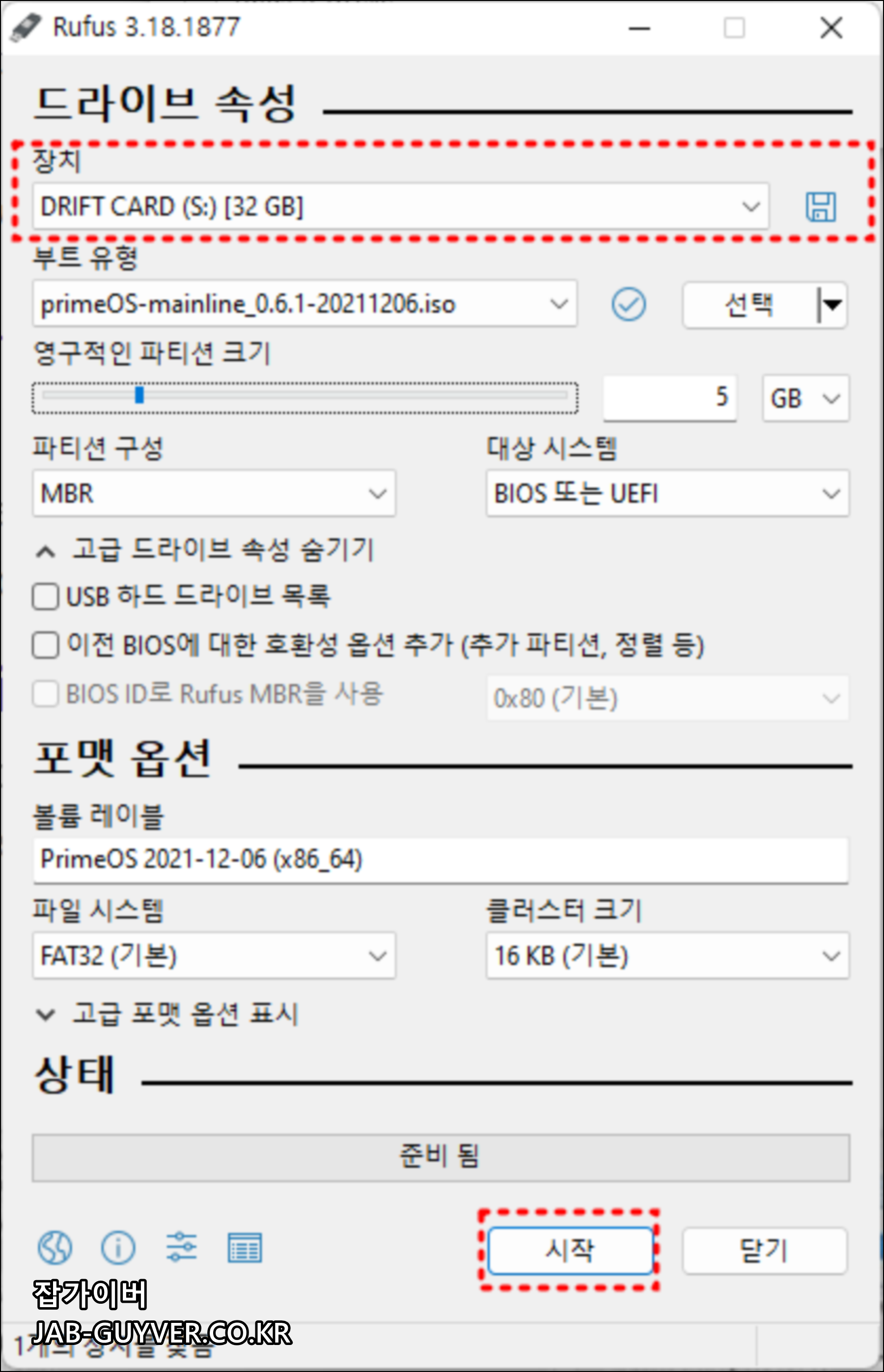 USB를 삽입 후 Prime OS USB 부팅 설치디스크를 만듭니다.