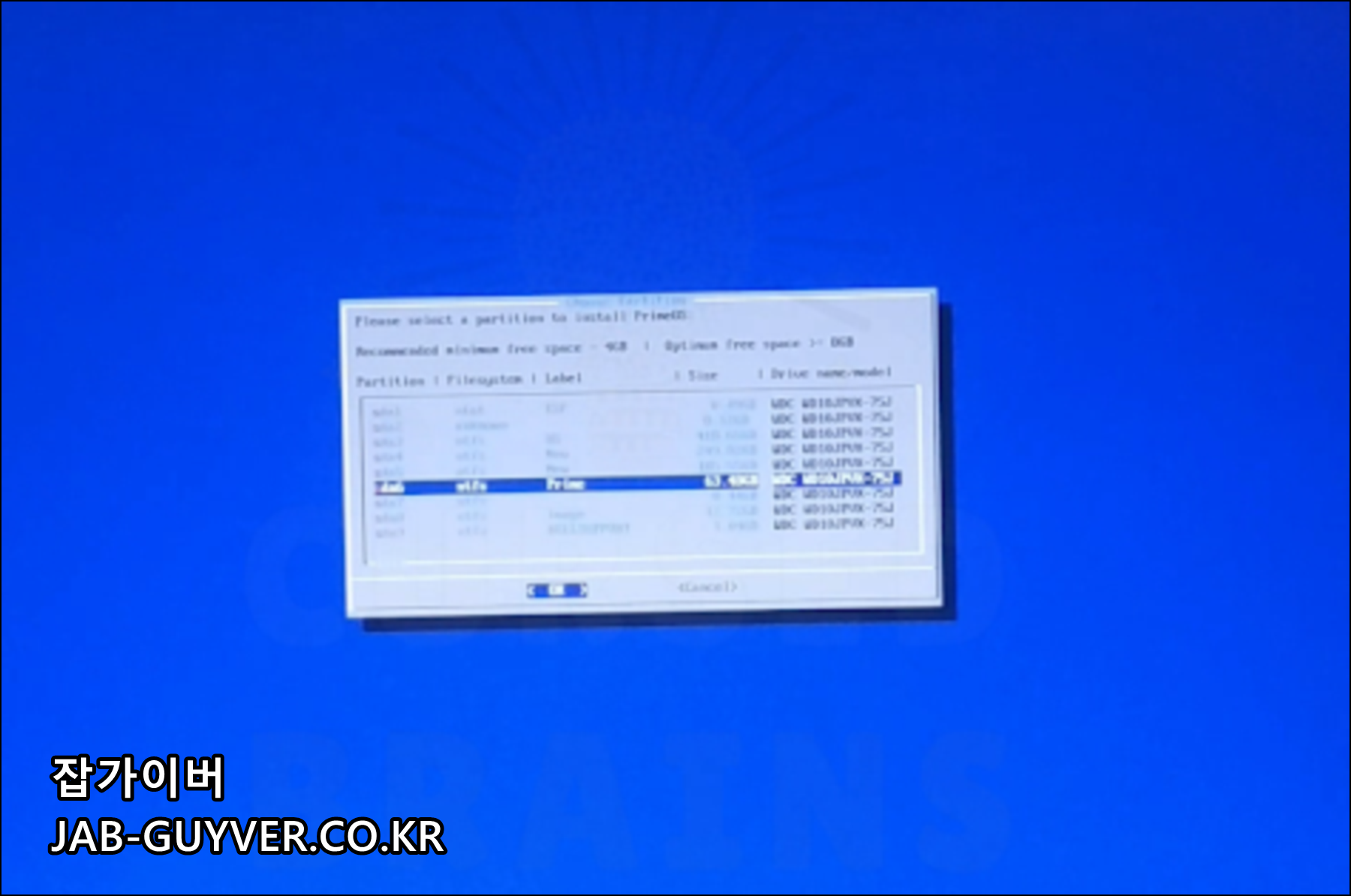 설치할 파티션을 선택합니다.