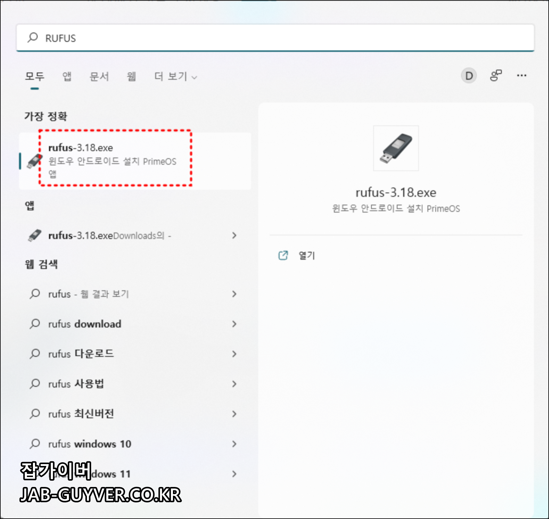Rufus 앱을 실행합니다.