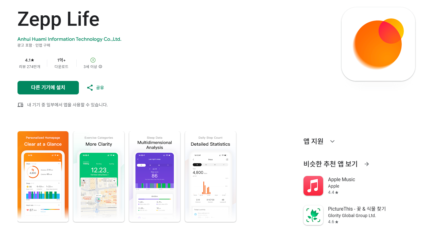 - 구글플레이에서 Zepp Life 앱을 설치하고 로그인합니다.