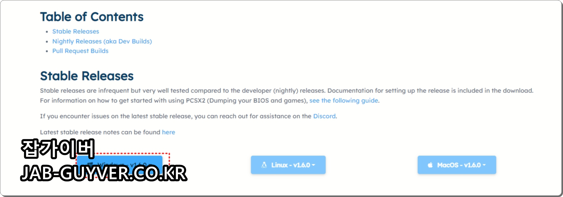 https://pcsx2.net/ 사이트에서 항상 최신의 Nightly 버전과 Stable 버전을 구분해서 제공합니다.