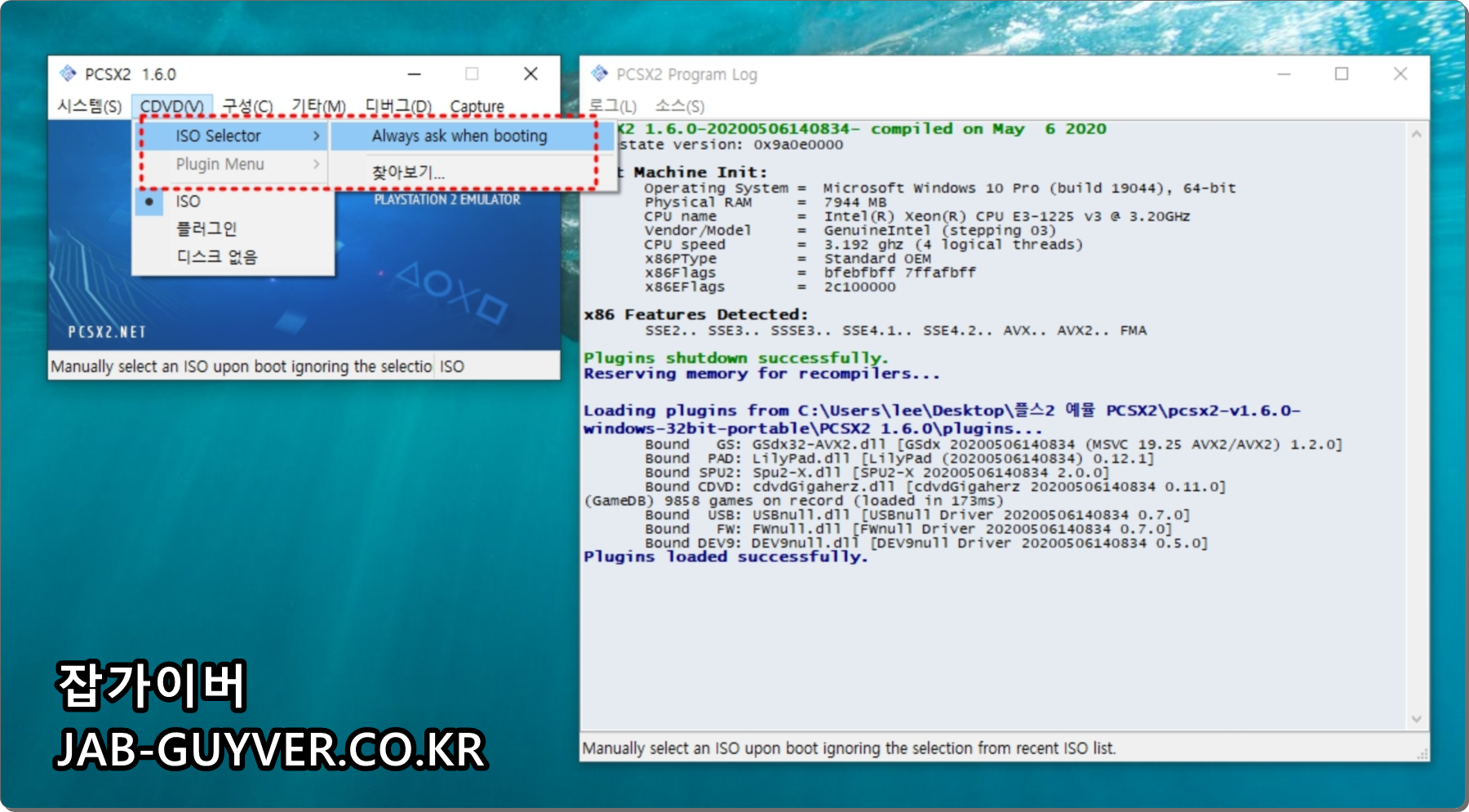 CD/DVD 드라이브가 장착된 PC에서는 실제 PS2 디스크를 삽입 후 실행 가능합니다.