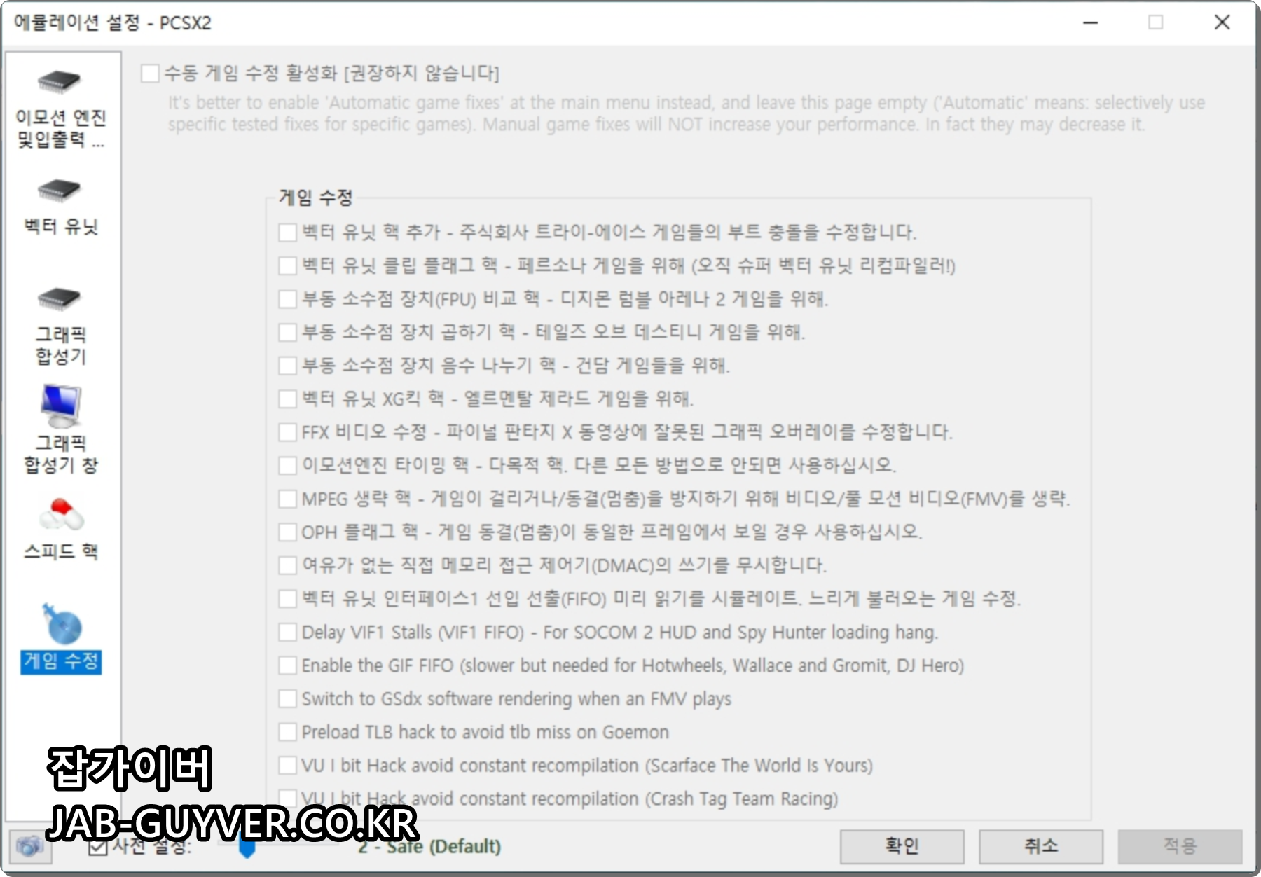 PCSX2 최적화 추천 설정값 (기준: 1.7.x Nightly 버전 기준)