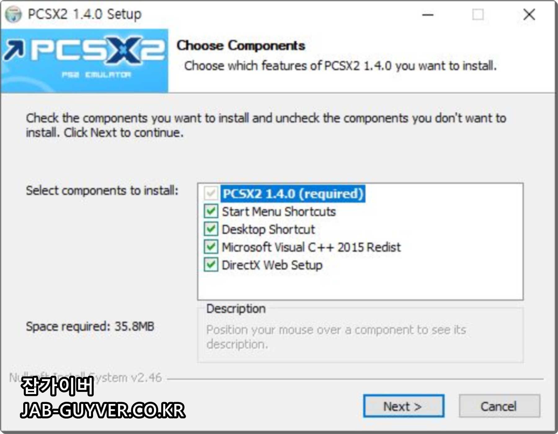 플스2 에뮬을 설치 시 기본적으로 윈도우에서 Microsoft Visual C++과 DirectX 함께 설치합니다.