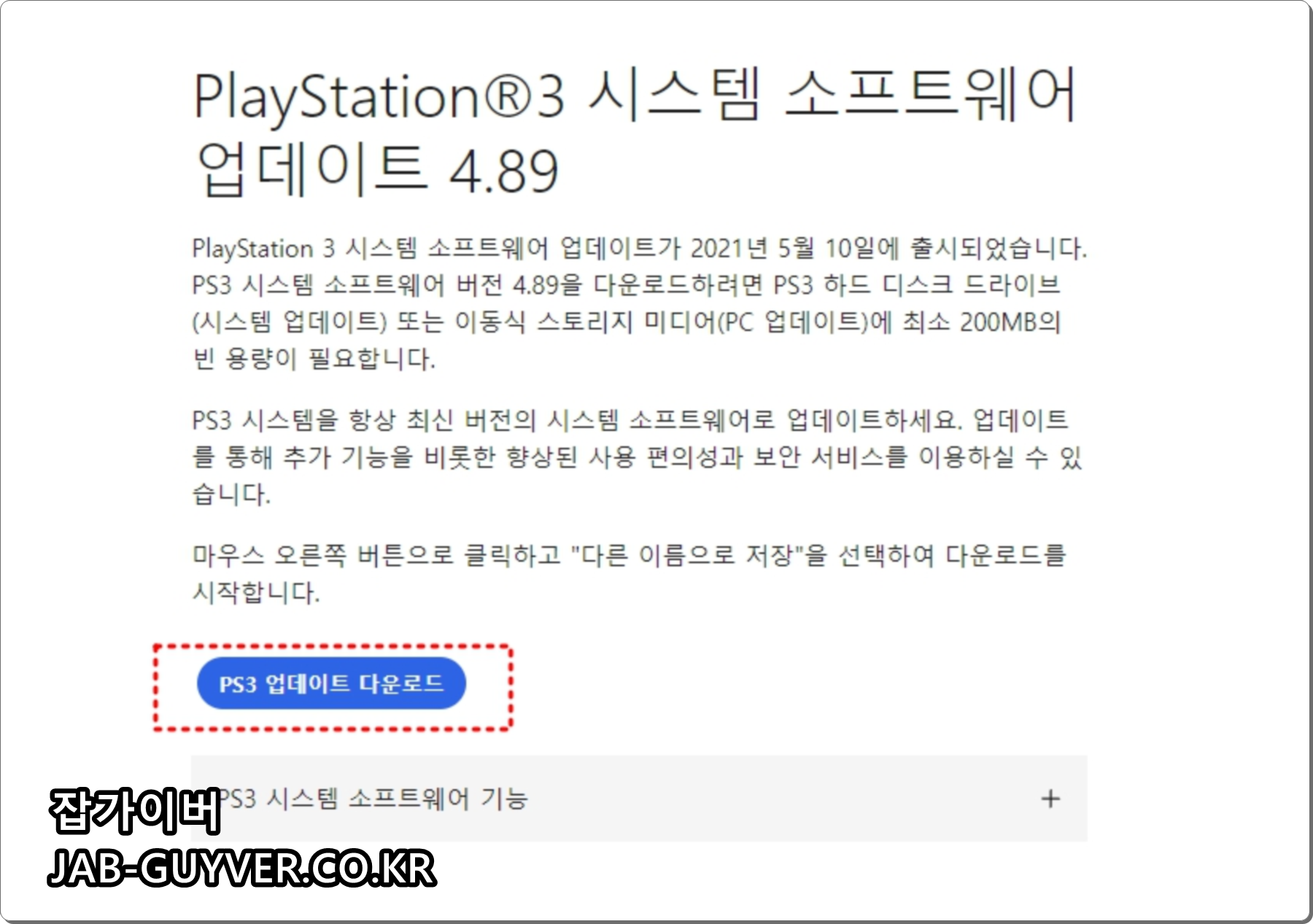 - 플스3 펌웨어 사이트에 접속해서 PS3UPDAT.PUP 파일을 다운로드 받습니다.
