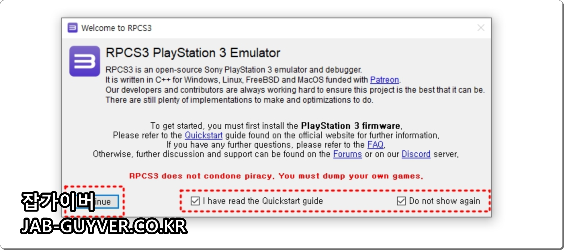 RPCS3 PlayStation3 Emulator 실행하기 위해서 동의를 해야합니다.