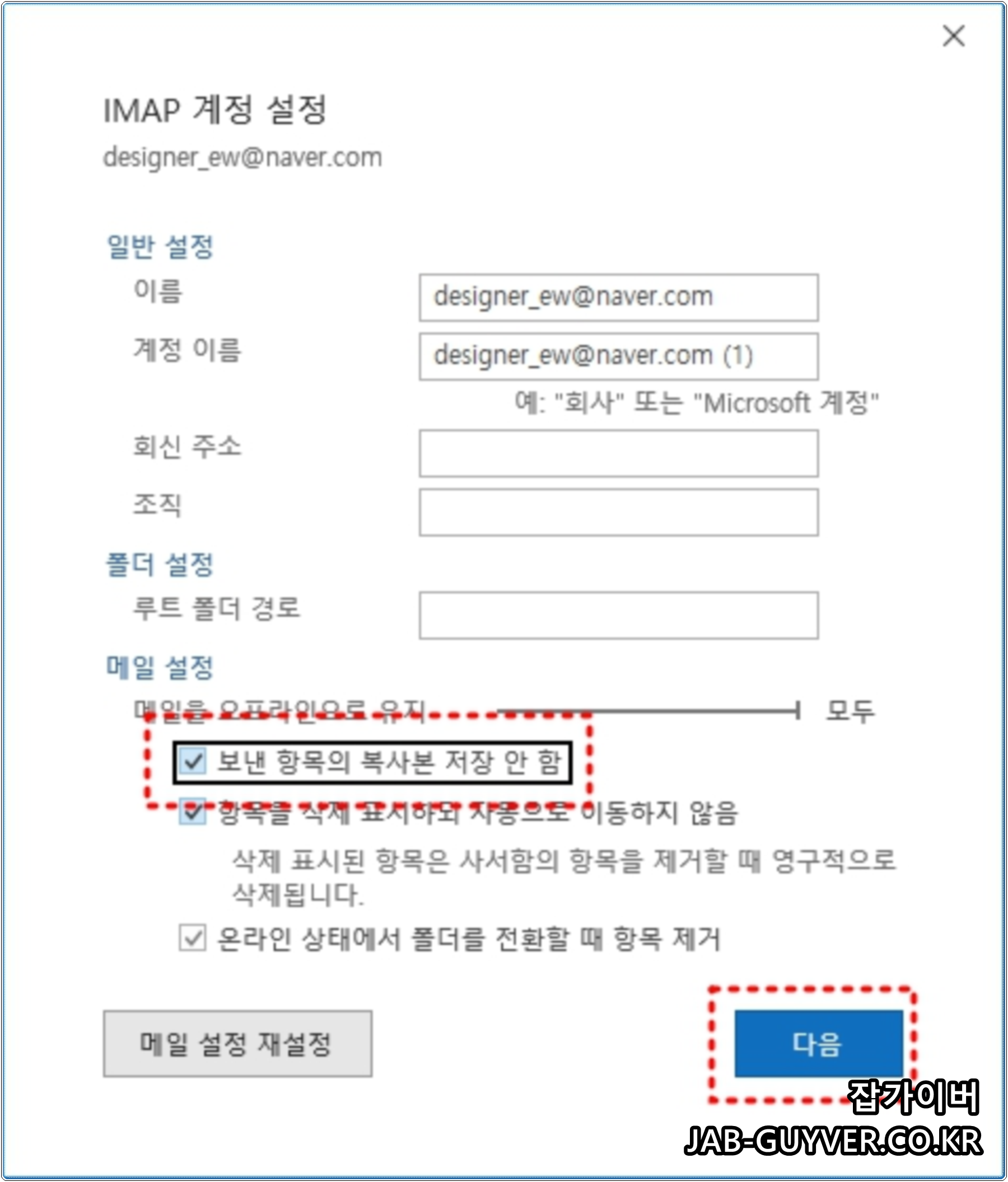 메일 복사본 저장 옵션을 해제해도 여전히 중복된다면?