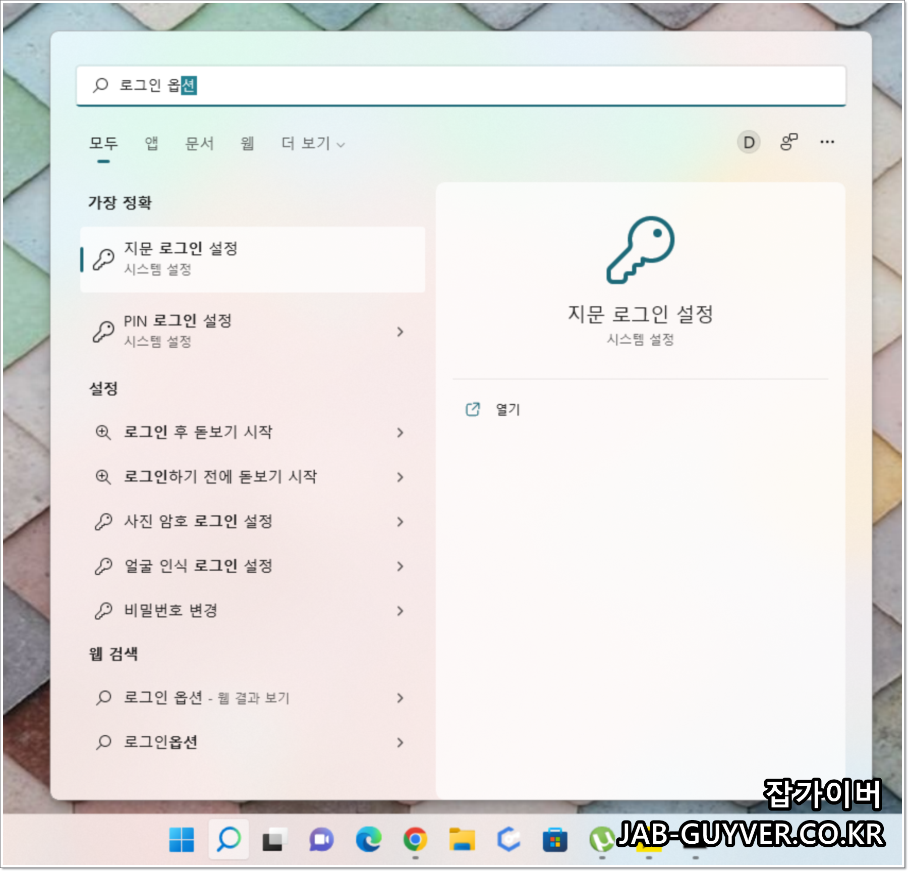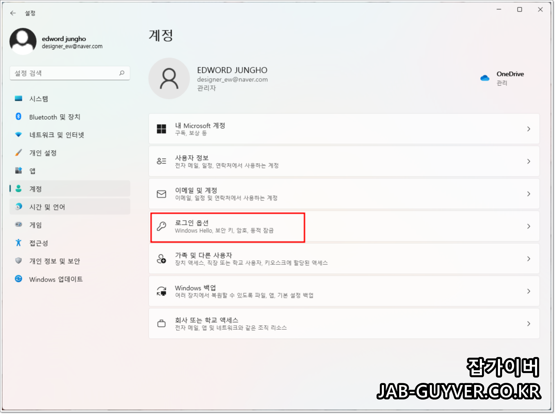 윈도우11 검색창 -> 로그인 옵션을 입력 해 계정 -> 로그인 옵션으로 들어갑니다.