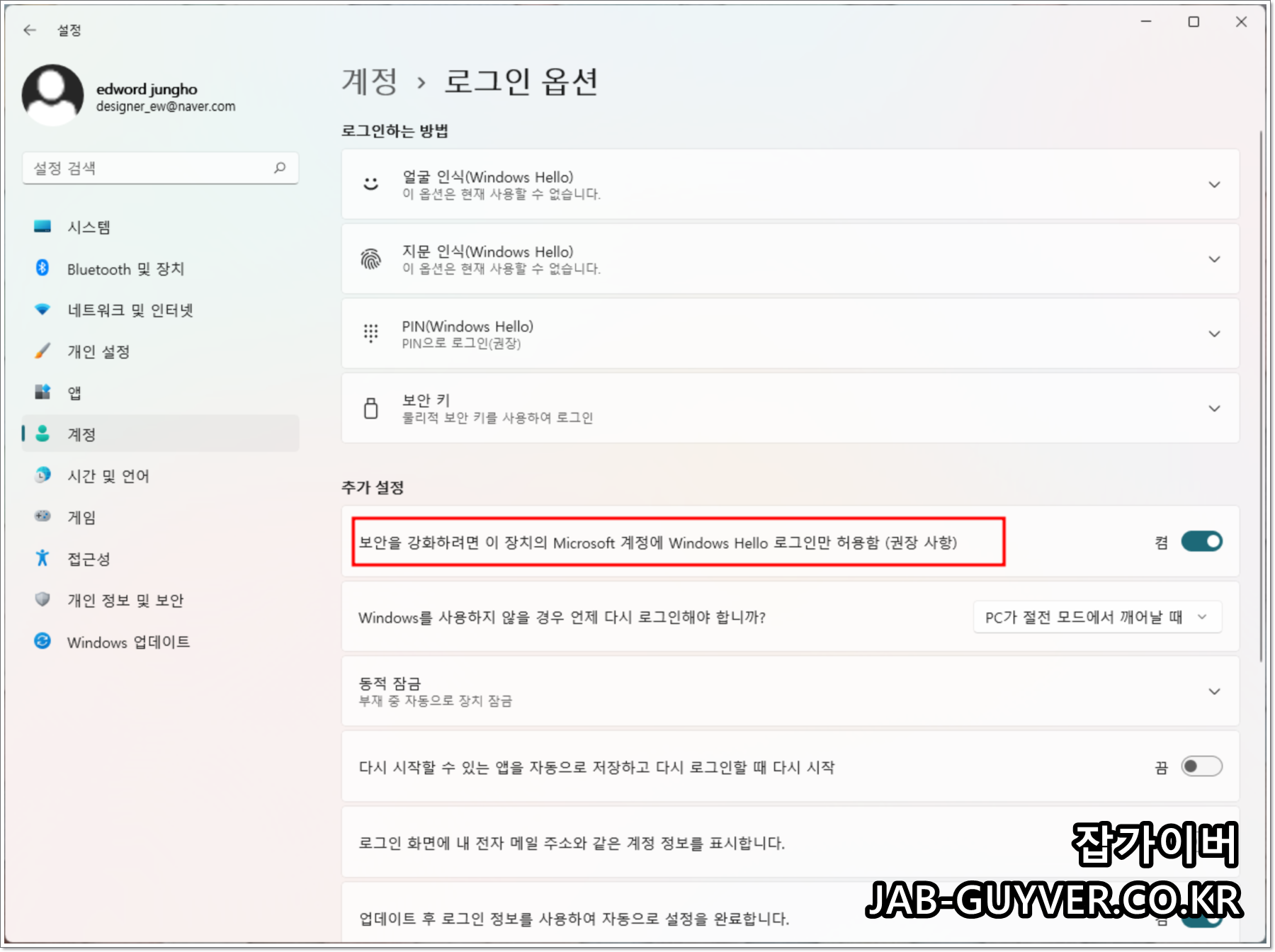 윈도우11에서 자동 로그인 설정 후 보안이 걱정되는데요?