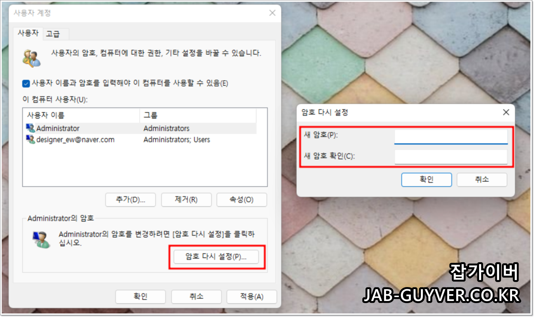 사용자계정 암호해제 및 관리자계정 설정 - 윈도우11, 10, 8, 7 사용자