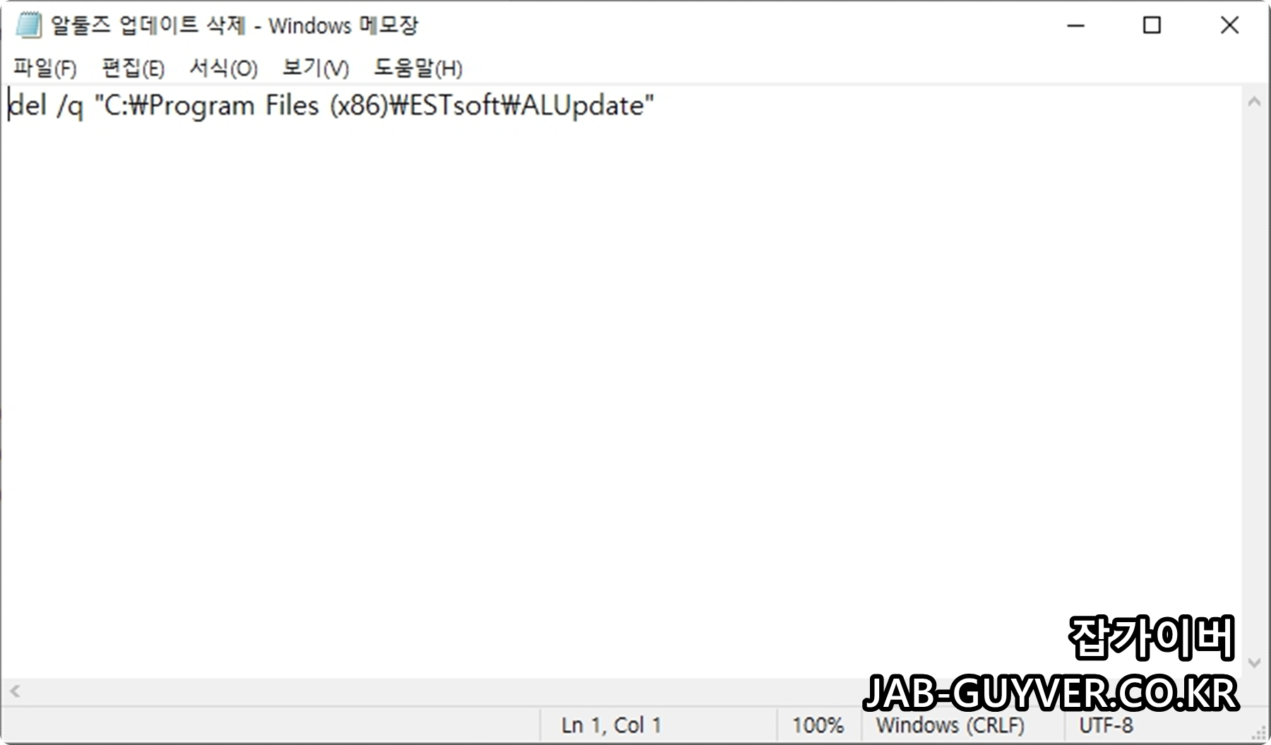 아니면 메모장이나 워드패드를 실행 해 알툴즈 업데이트 파일이 있는 경로를 지정해 실행되느것을 차단하는 명령어를 입력합니다.