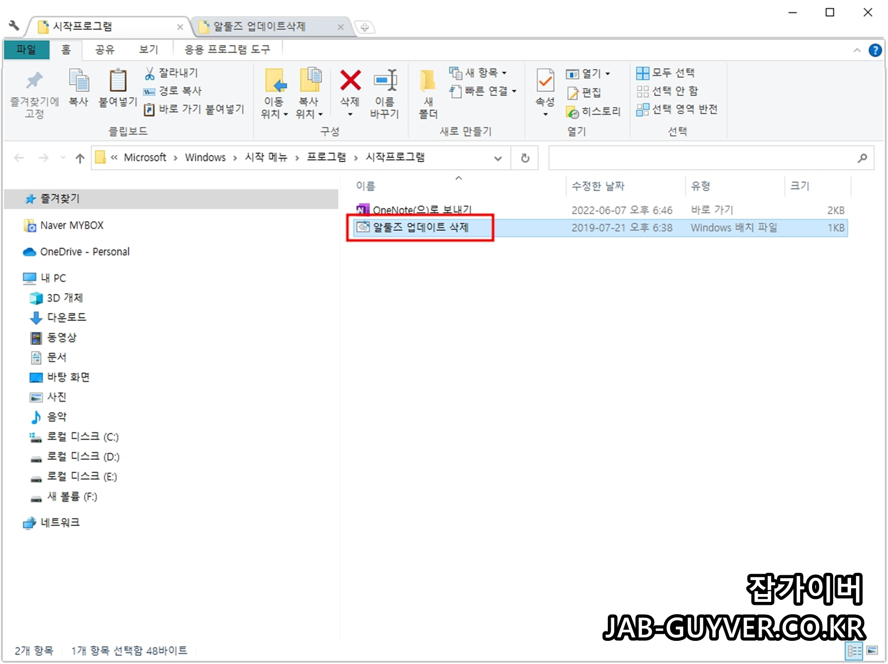 이후 이 배치파일을 윈도우 시작프로그램에 등록하면 컴퓨터 부팅 시마다 자동으로 차단되기 때문에 추가 설치나 자동실행을 방지할 수 있습니다.