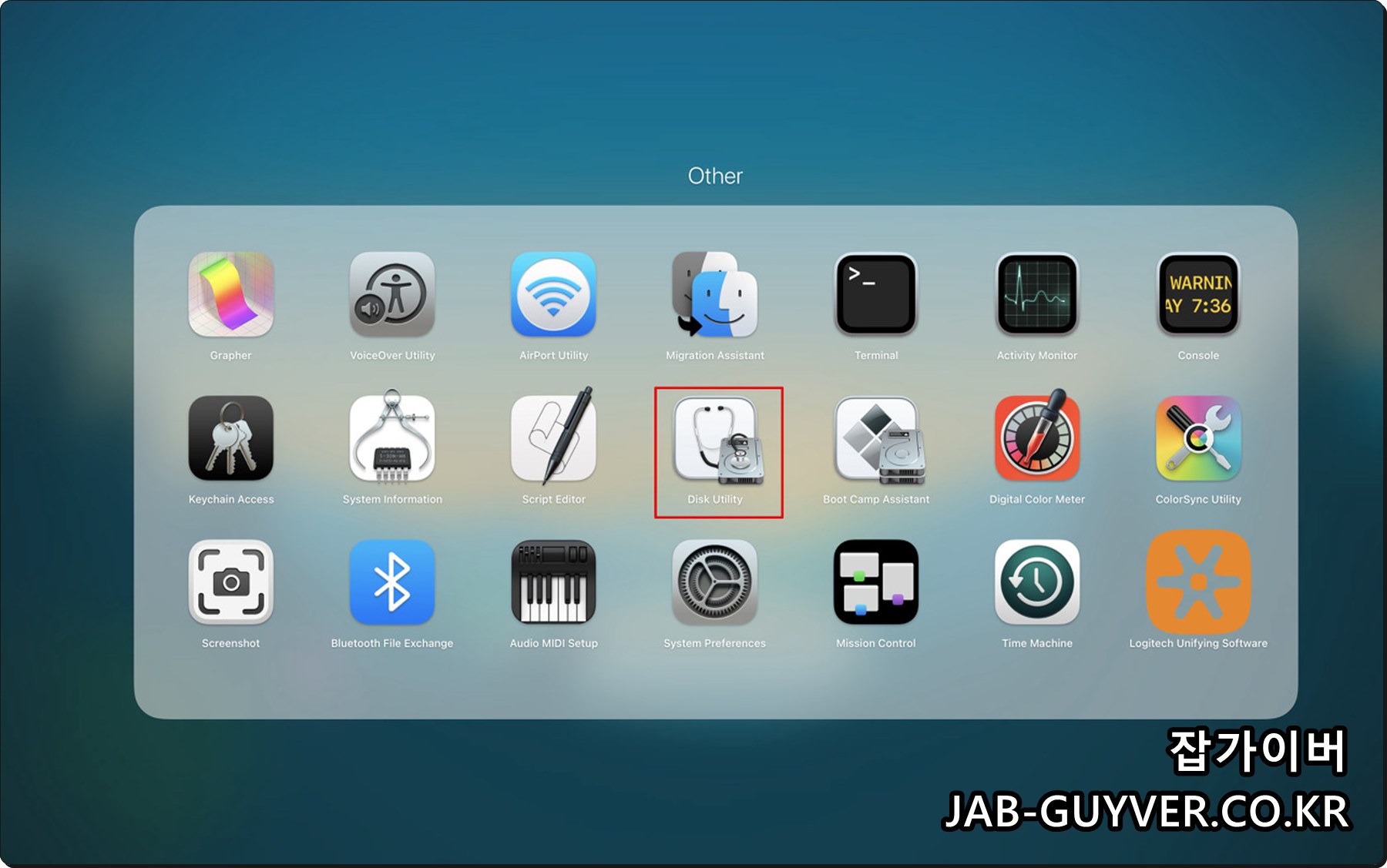 디스크 유틸리티를 실행합니다.