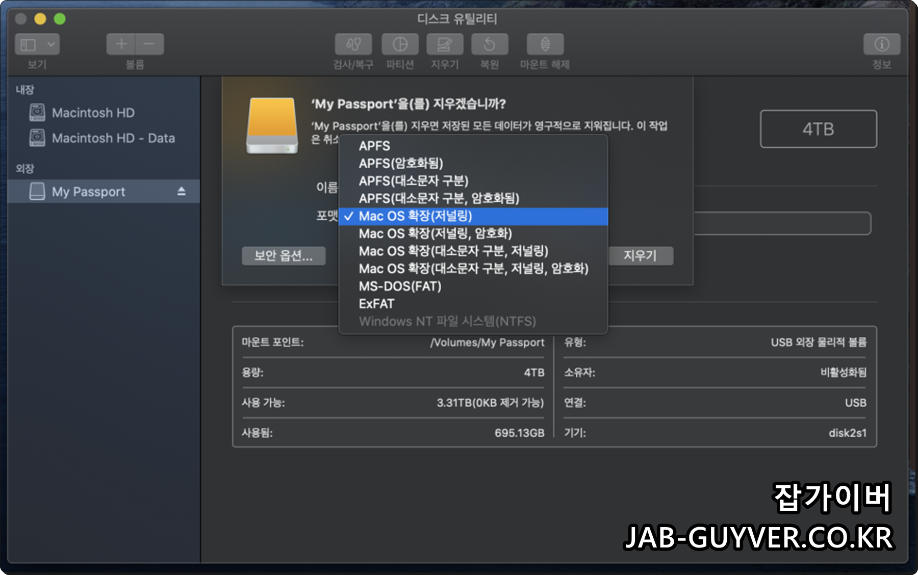 MacOS 파티션 포맷 종류