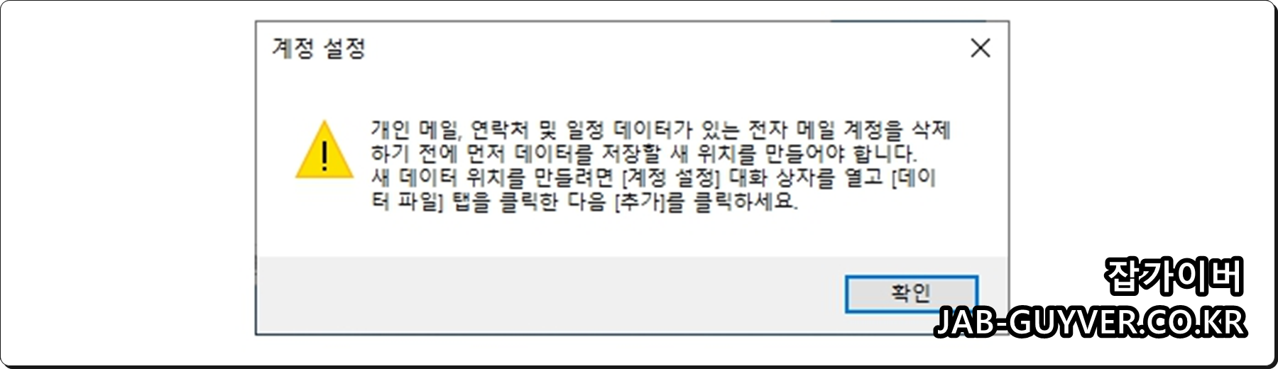 아웃룩 계정 삭제 후 다시 추가하려고 할 때 오류가 나는 이유는?
