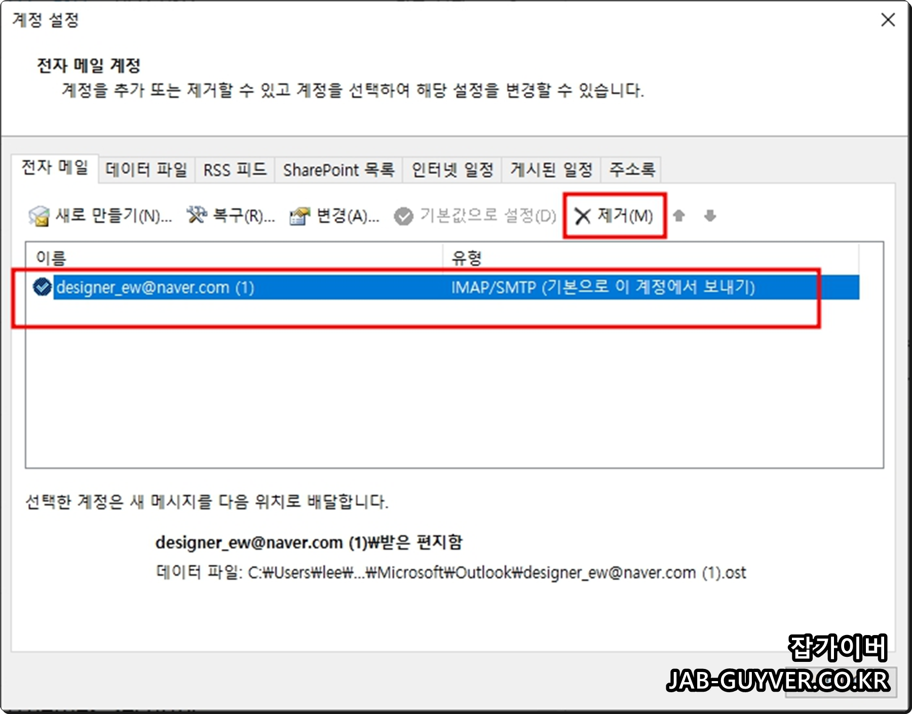 아웃룩 계정 삭제 및 초기화 방법 – 메일 설정 재연동