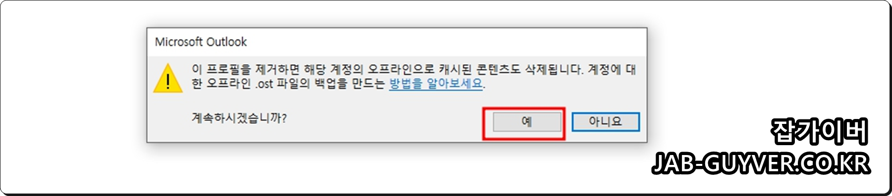 아웃룩 프로필을 삭제하면 해당계정은 오프라인으로 캐시된 콘텐츠도 함께 삭제되며 계정에 대한 오프라인 .ost 파일을 백업을 만드는것을 추천합니다.