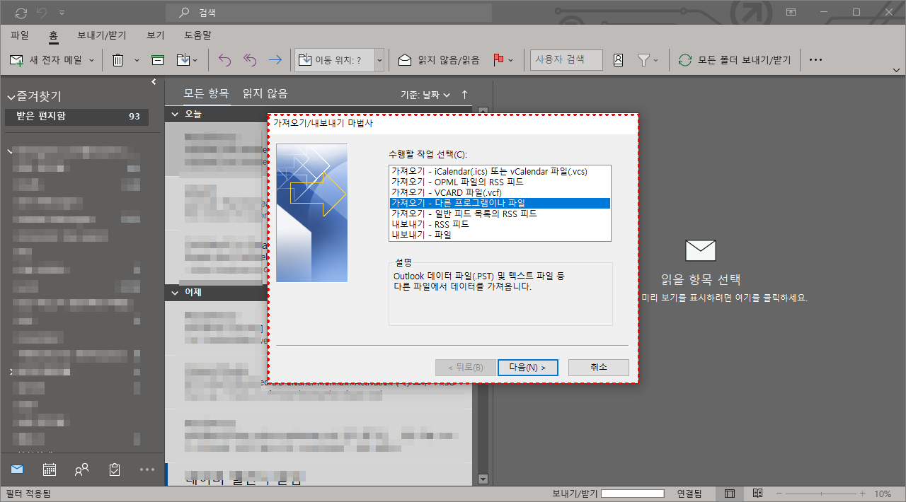 | 4단계 | PST 백업 | 삭제 전, 데이터 유실을 막기 위해 PST 파일로 메일 백업 |