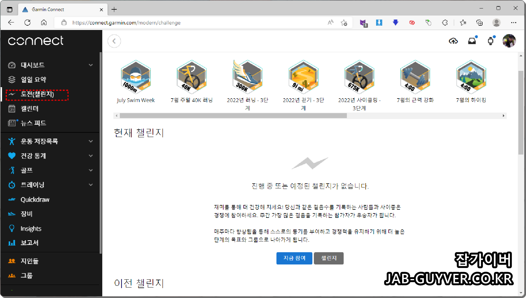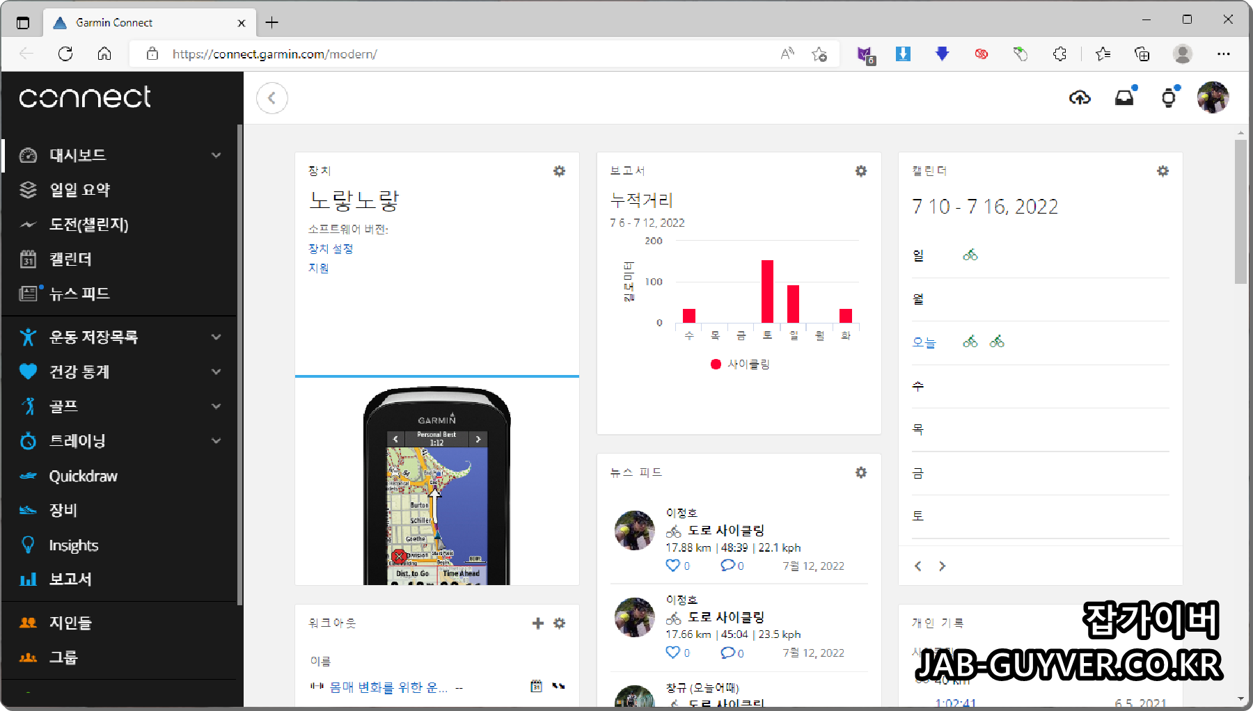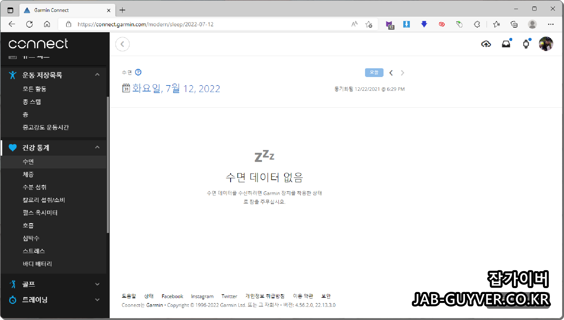 가장 많이 사용하게 되는 가민커넥트를 통해 가민커넥트 홈페이지로 접속합니다.