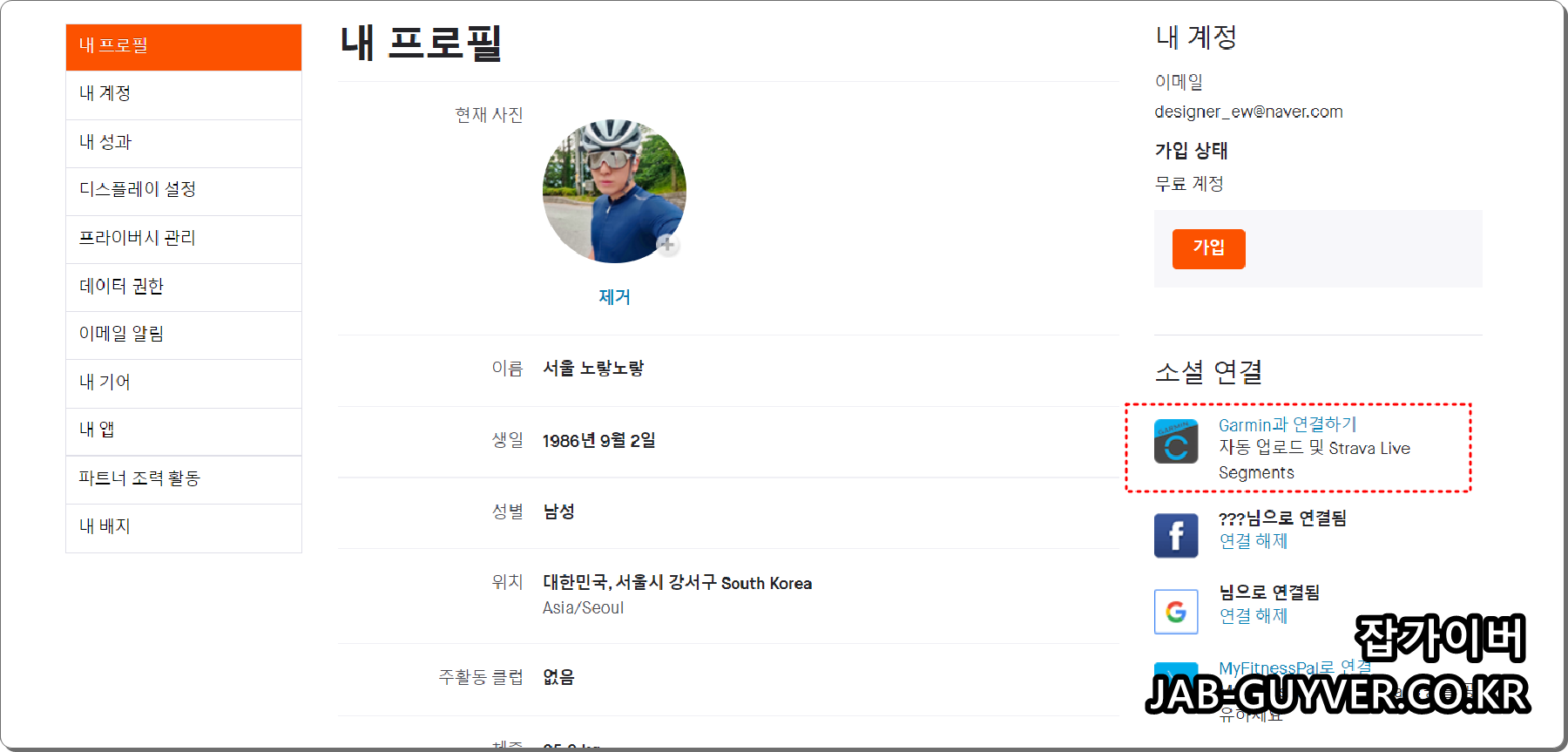 마라톤 달리기 수영 헬스 자전거등 스트라바에 기록을 업로드 하는 경우 가민커넥트와 스트라바를 연동해서 데이터를 바로 동기화할 수 있습니다.